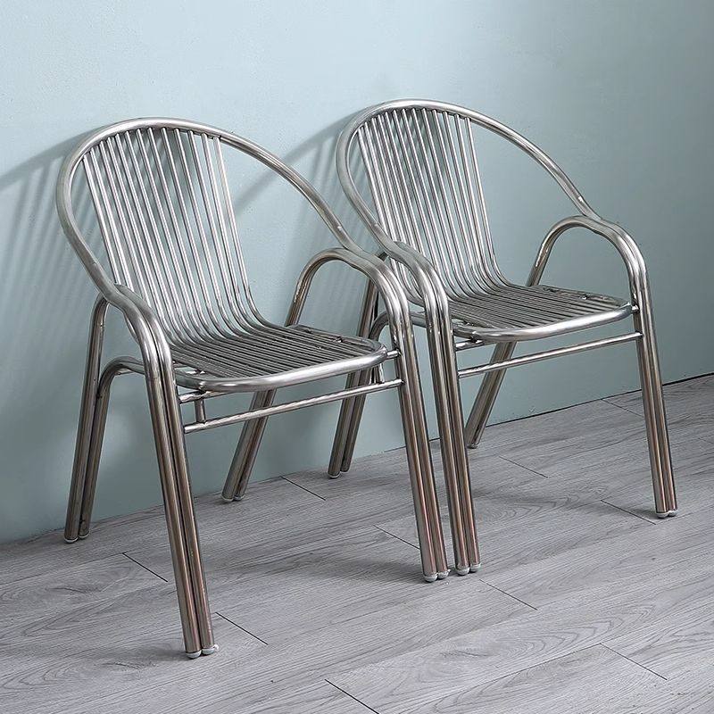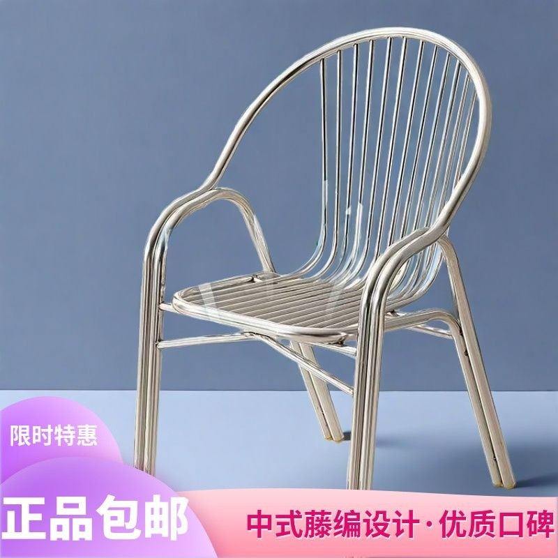 304简约不锈钢椅子加厚靠背椅户外阳台家用餐椅单人扶手休闲