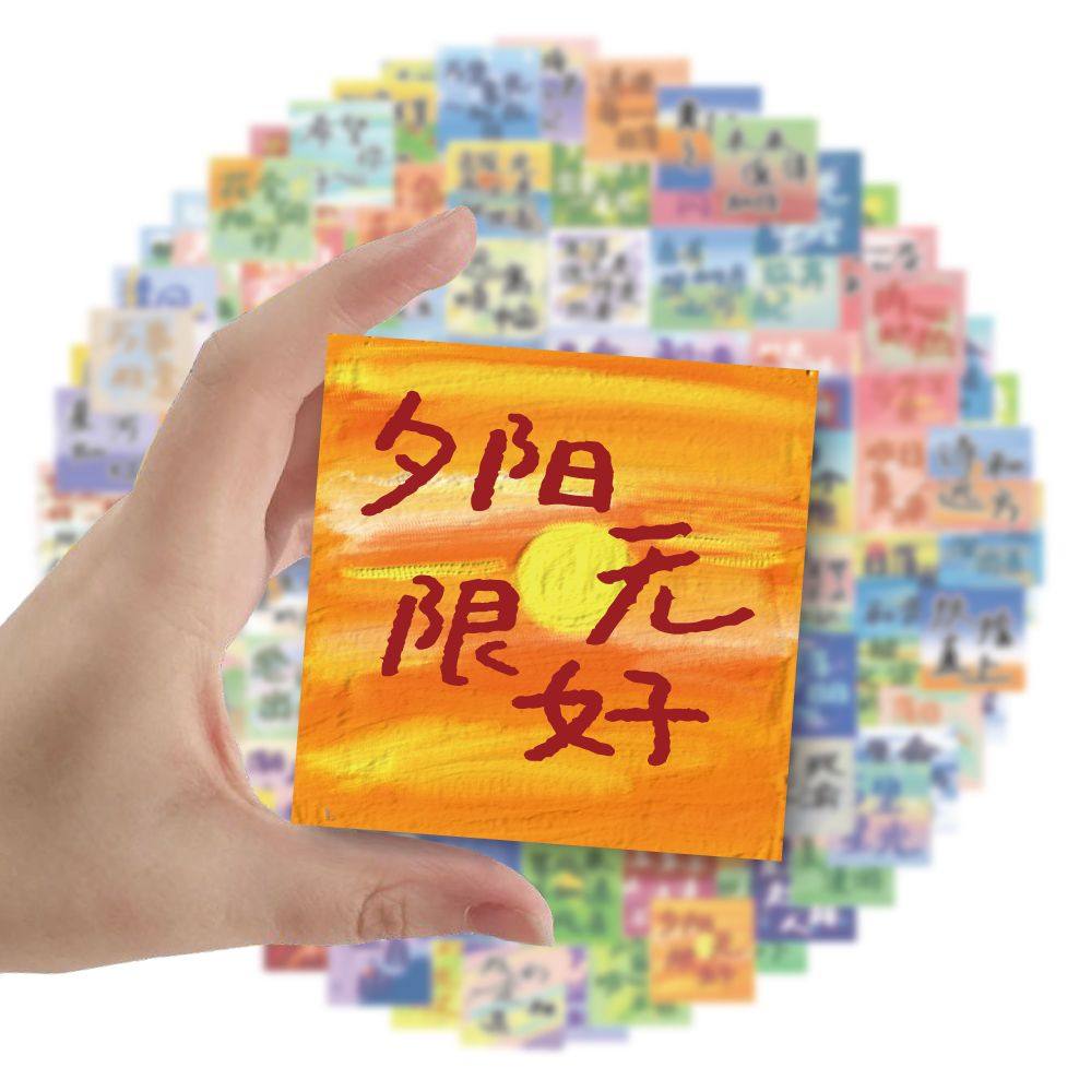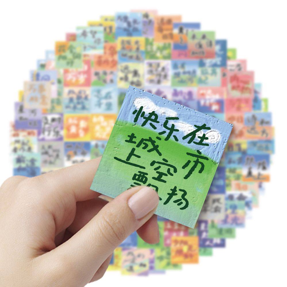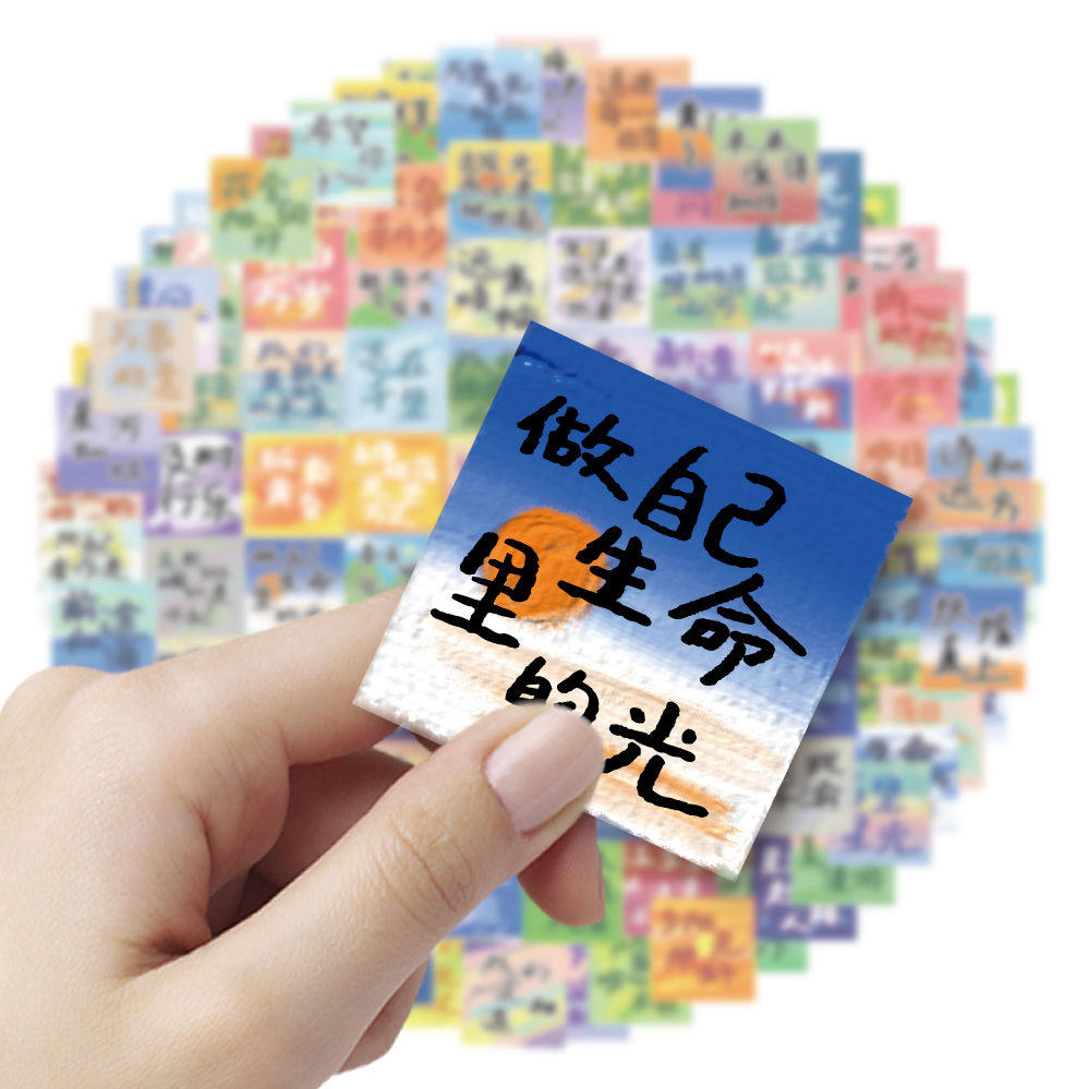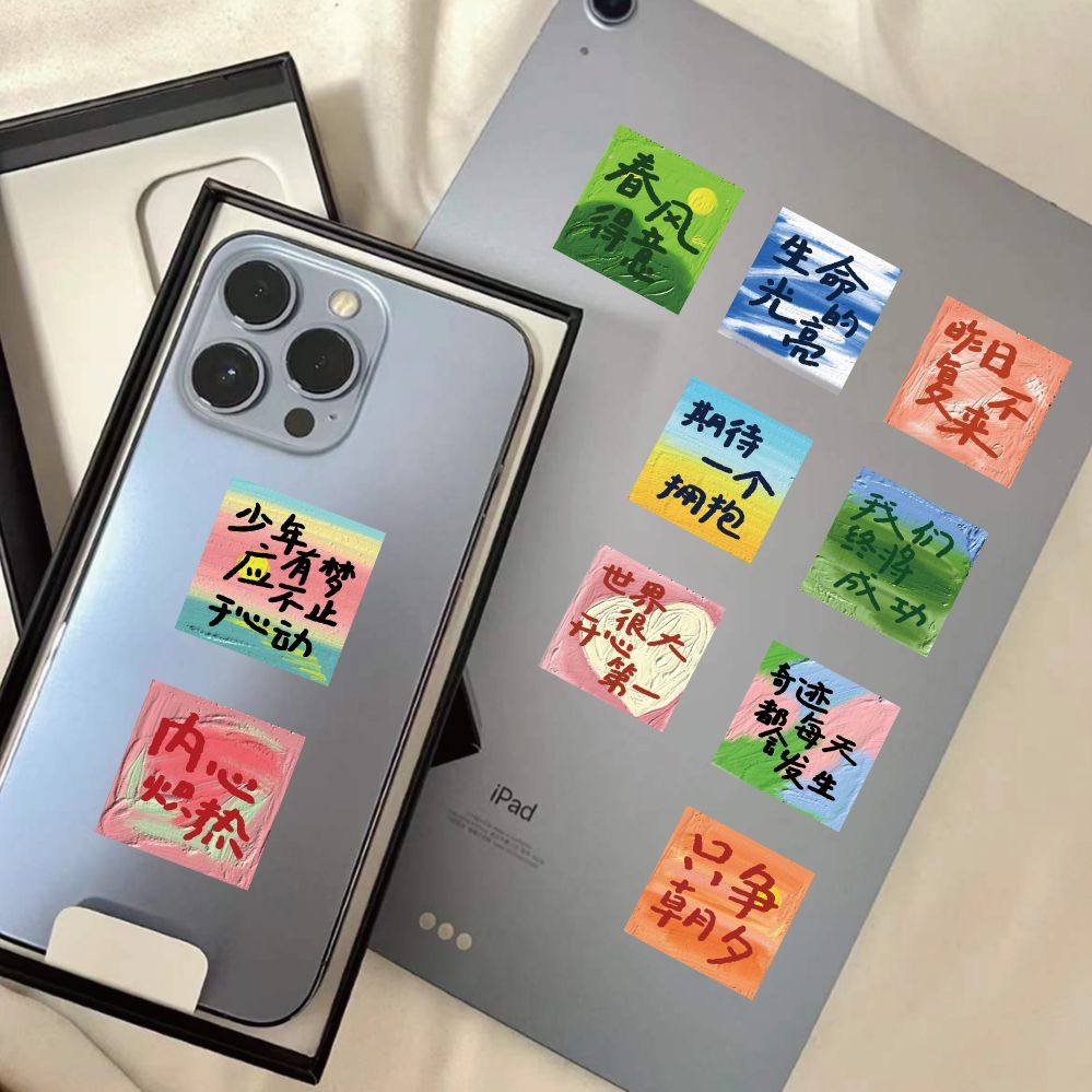 100张油画文字贴纸丙烯画高颜值ins手账个性账本装饰防水贴画自粘
