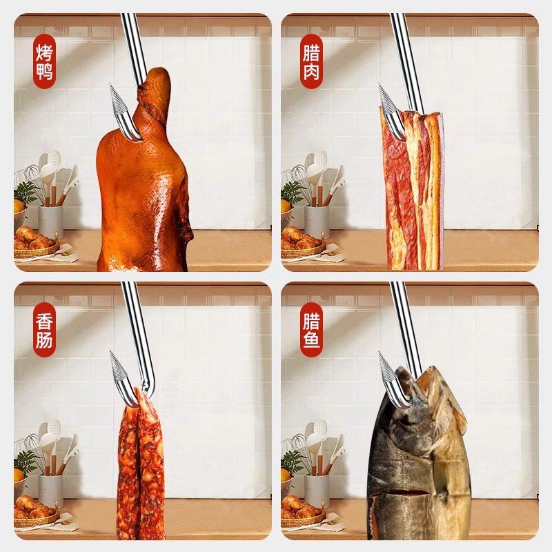 晒腊肉挂钩不锈钢挂腊肉的钩子S型大号加粗实心挂熏猪肉香肠尖头