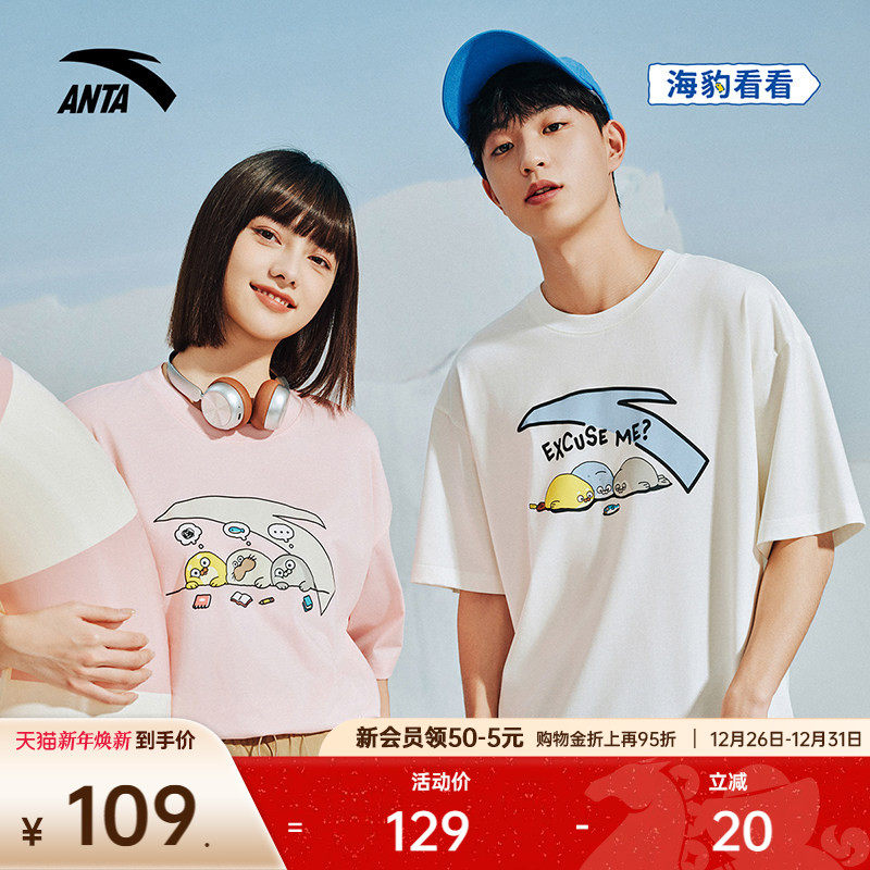 安踏×海豹看看联名丨冰丝休闲短袖男士夏季情侣款抗菌t恤女上衣