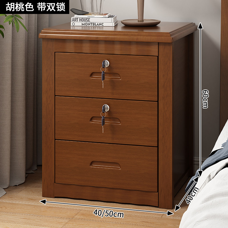 免安装中式实木床头柜卧室家用带锁储物柜特价床边收纳抽屉榉木