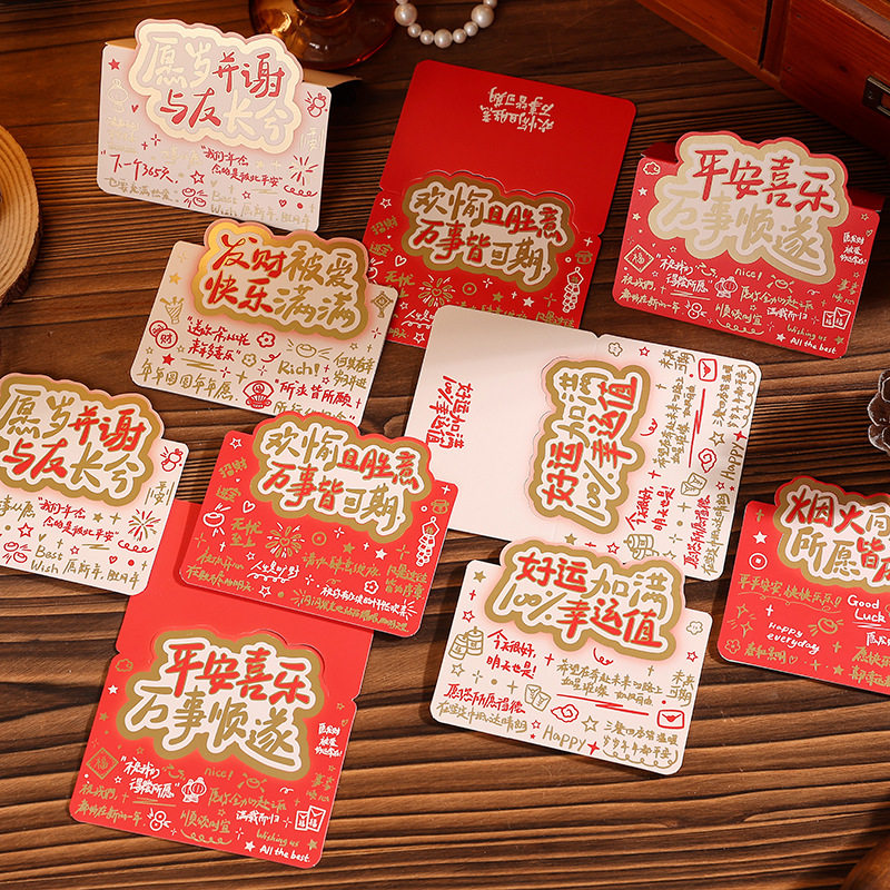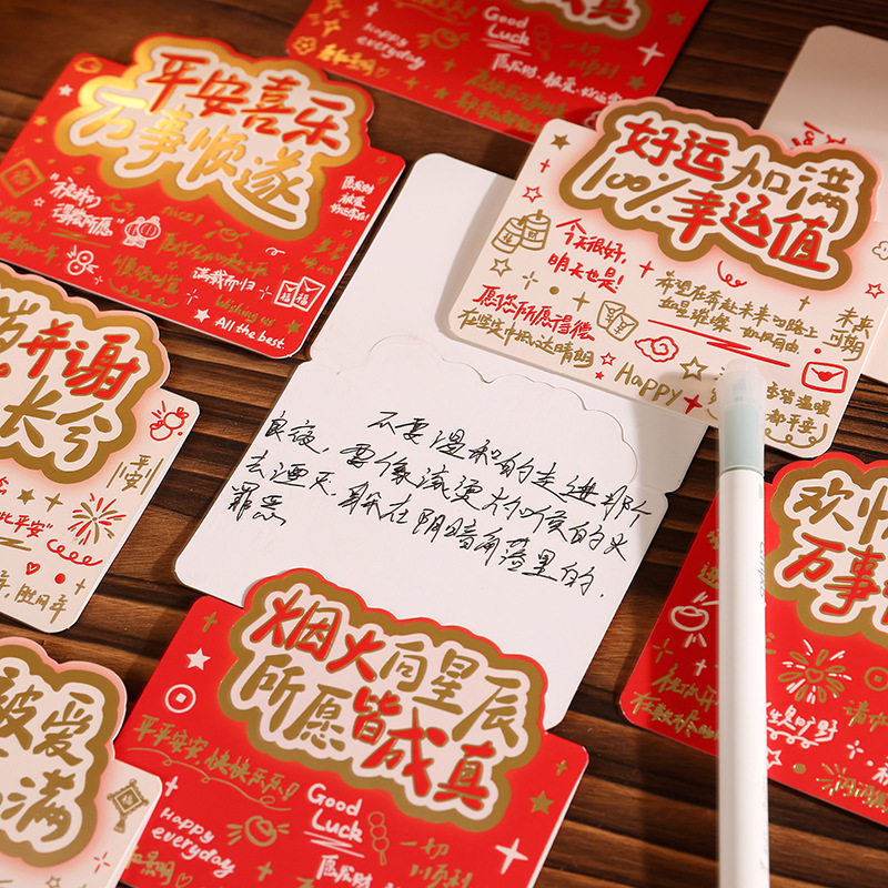 烫金好运文字贺卡励志明信片小卡片手写心愿卡折叠高级感空白祝福留言卡花店对折白色硬纸教师节日母亲父亲节