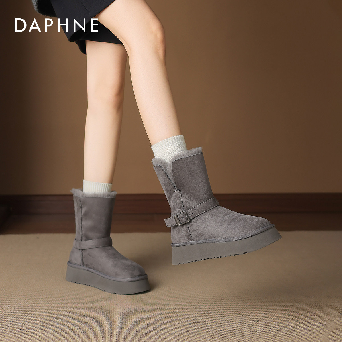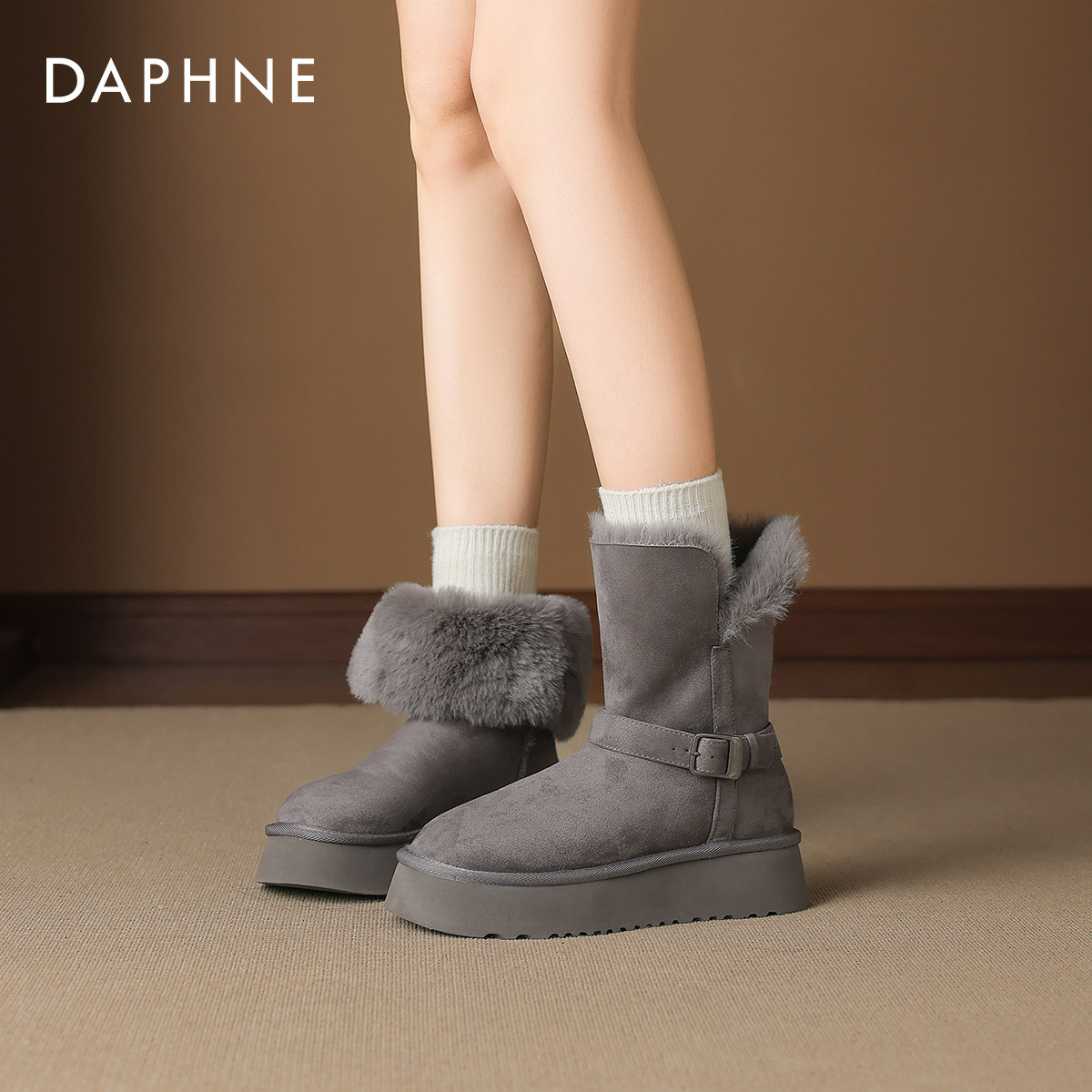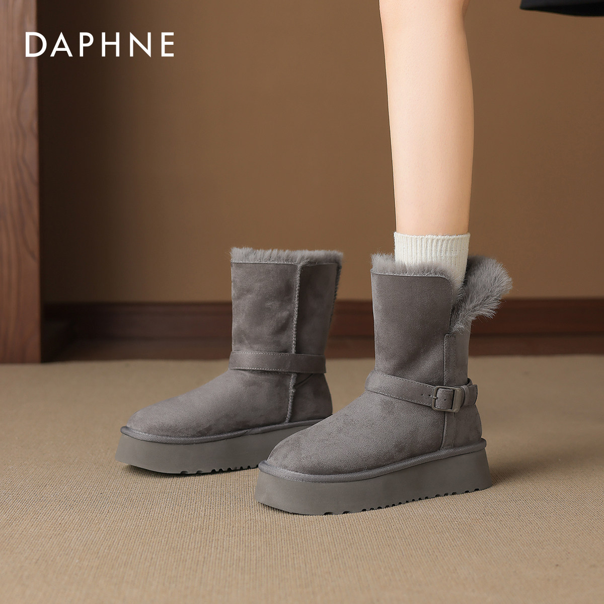 达芙妮厚底雪地靴女2026冬季新款灰色加绒保暖短靴东北毛毛棉靴子