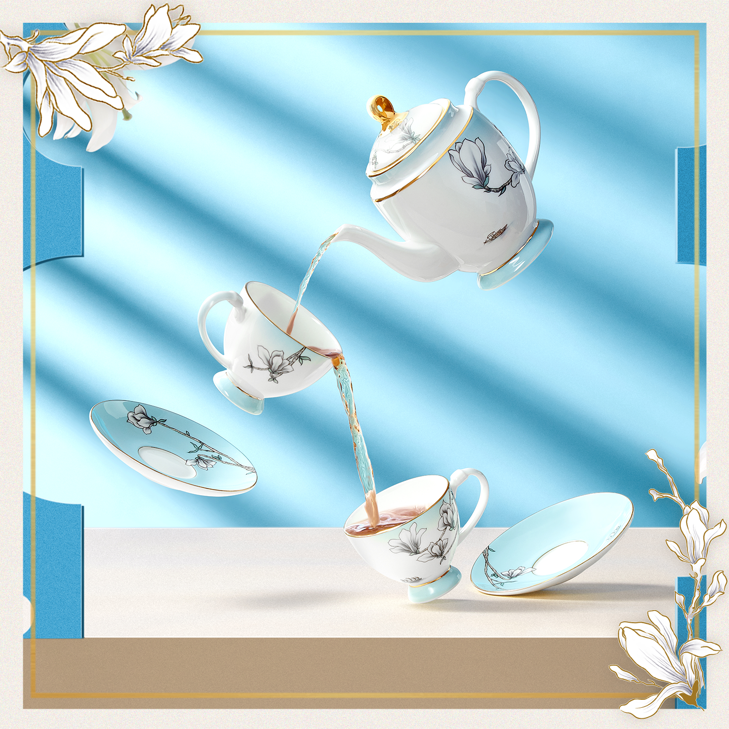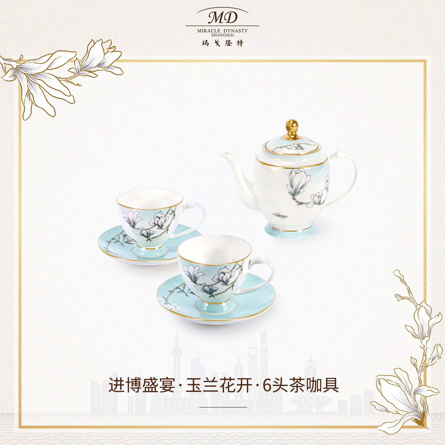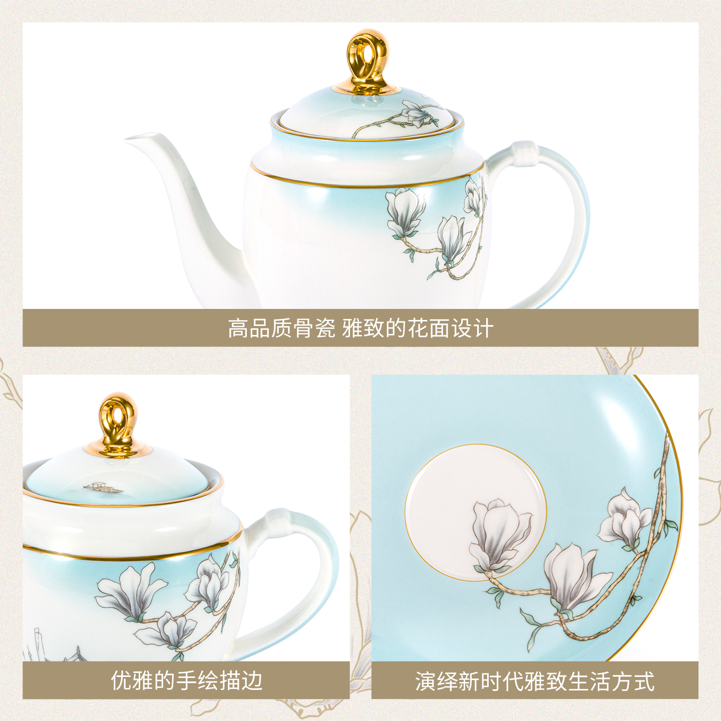 玛戈隆特玉兰花开骨瓷茶具套装咖啡杯高颜值情侣家用咖啡器具套装