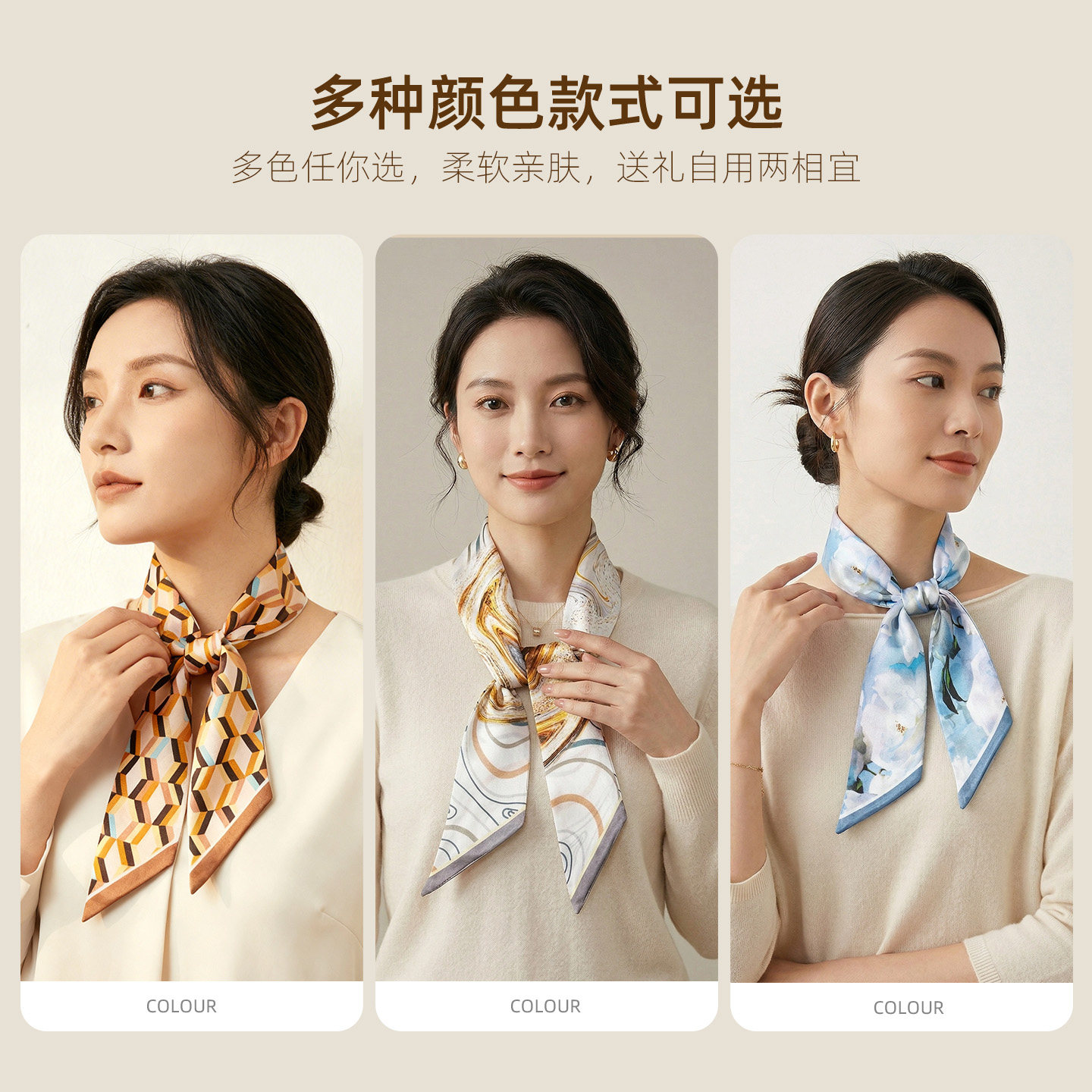 高级感丝巾女小围巾女春秋季棉麻手感脖子围脖小方巾新款日系优雅