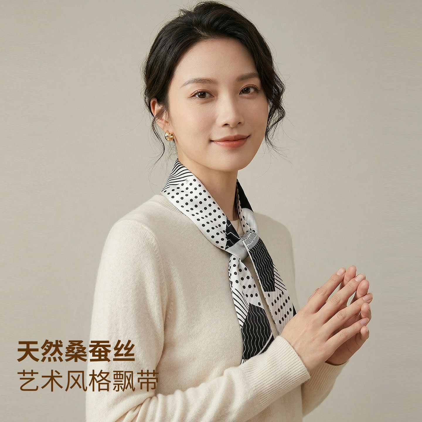 棕色波点丝巾印花高级百搭配饰系脖女2025年新款发带绑发长条围巾