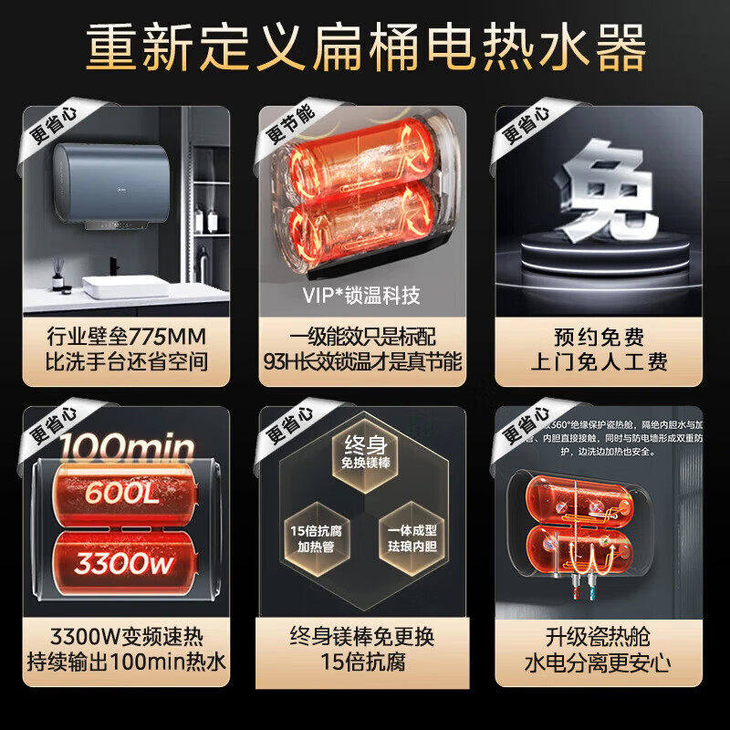 双胆变频 免换镁棒 超薄扁桶热水器
