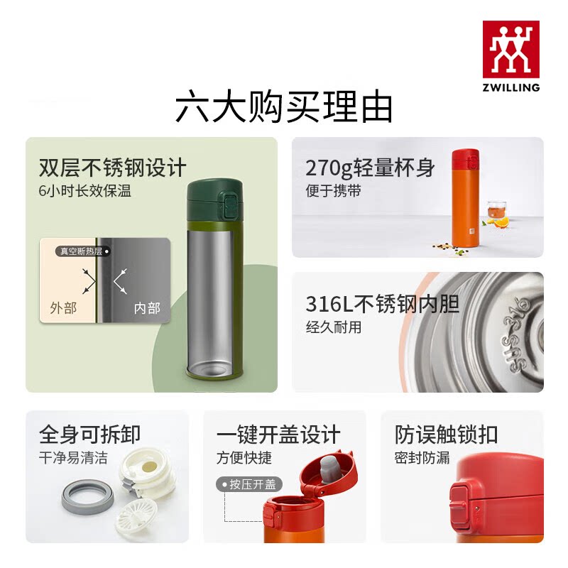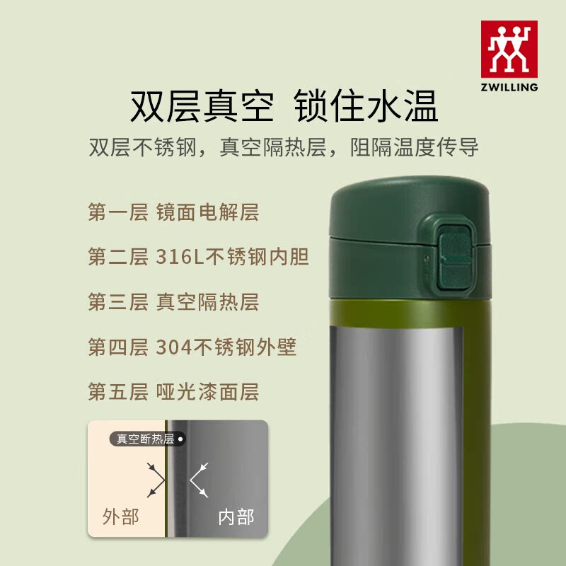 德国双立人NOW不锈钢真空弹跳杯石榴青柠色水杯保温保冷官方旗舰