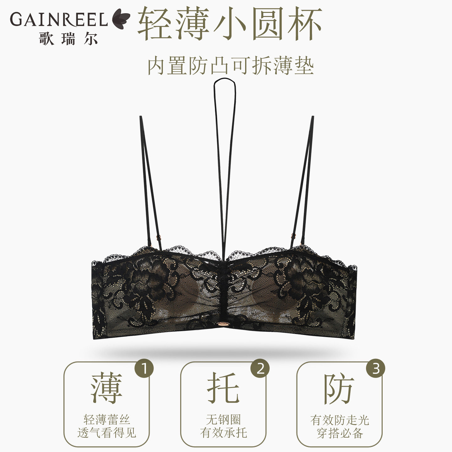 歌瑞尔法式蕾丝性感文胸薄款抹胸无钢圈细肩带美背内衣2026新款