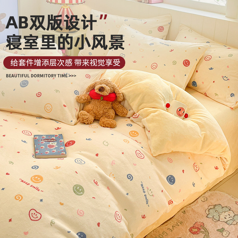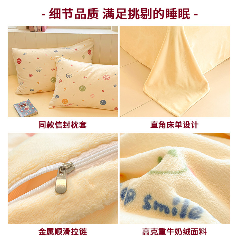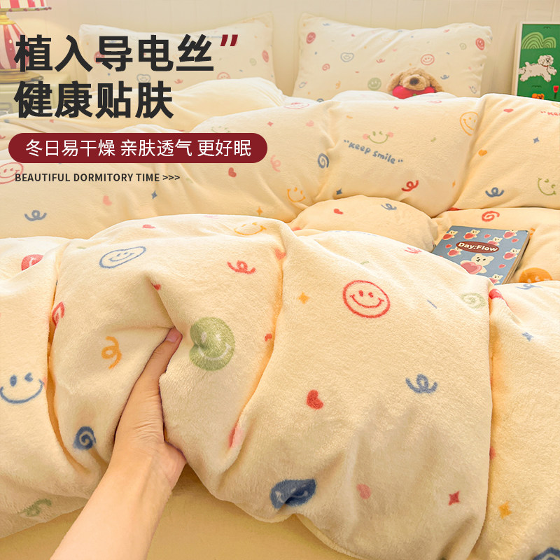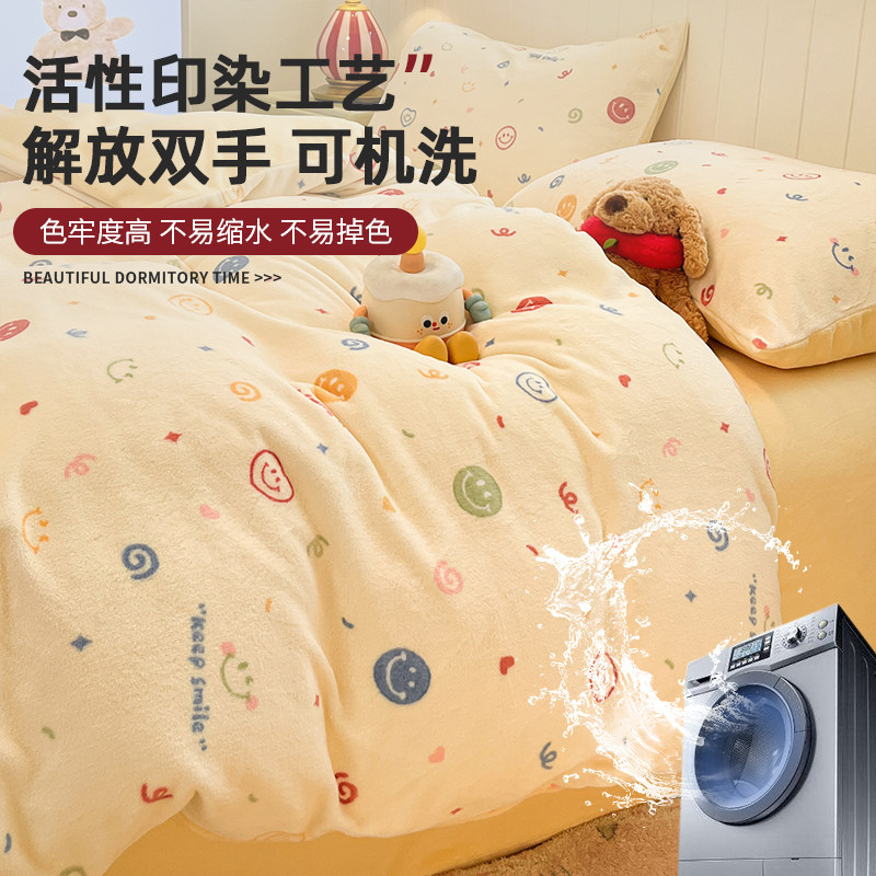 秋冬季加厚四件套牛奶绒被套床单双面加绒被罩床笠学生宿舍三件套