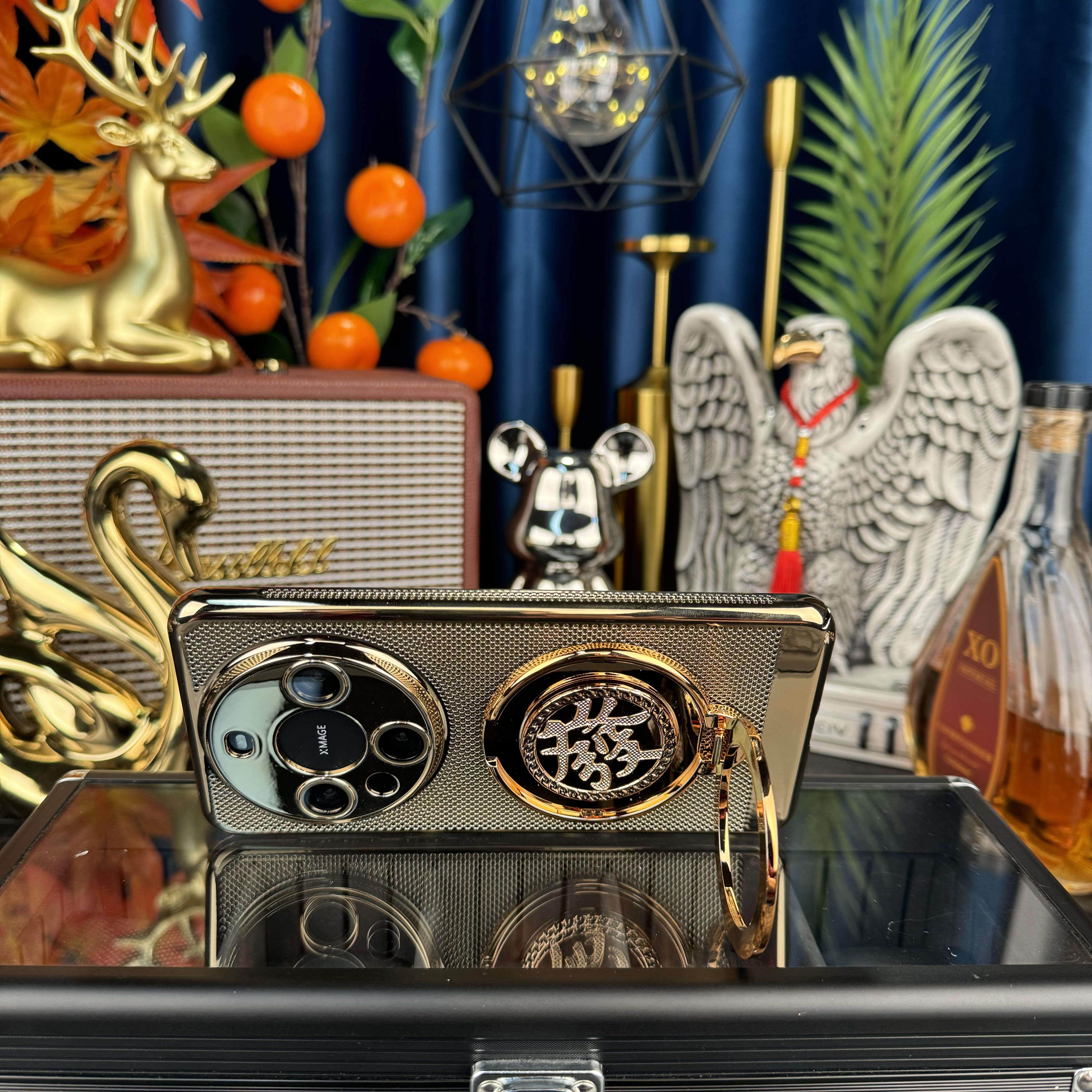 【解压陀螺+高清镜头膜】 适用华为mate60Pro手机壳电镀网格mate70pro發字旋转支架保护套mate40全包防摔外壳