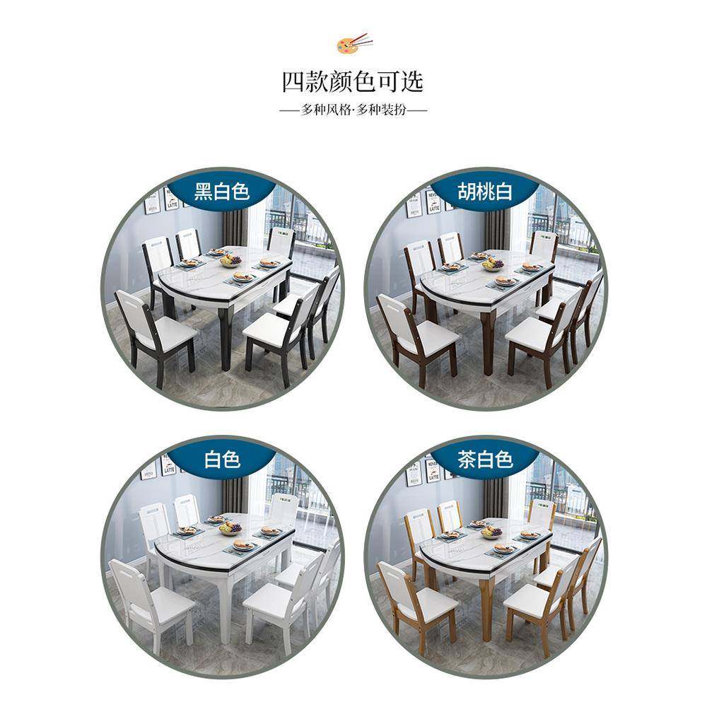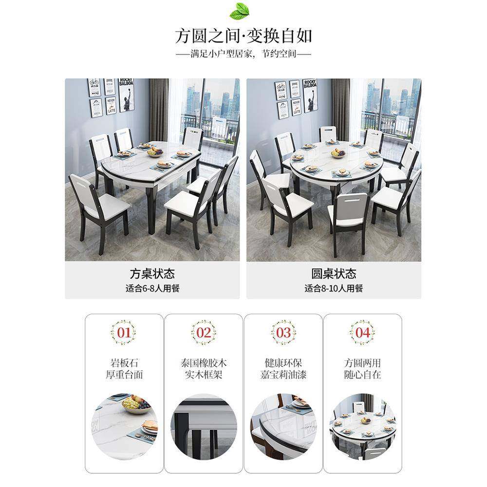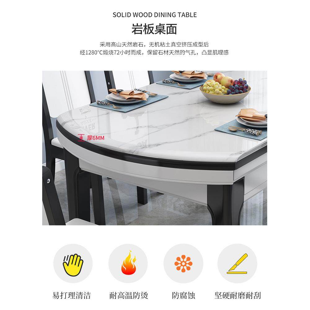 岩板实木餐桌组合现代简约可伸缩折叠家用小户型长方形饭桌椅子