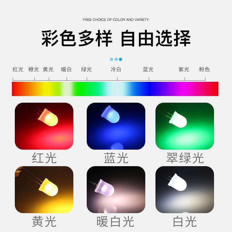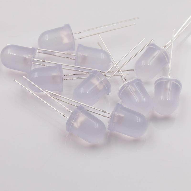10MM圆头雾状长脚led灯珠红蓝翠绿黄白色暖白光乳白F10直插灯珠