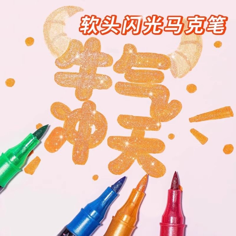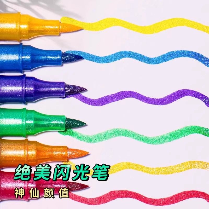 安格尔闪光马克笔笔荧光带闪粉闪闪荧光笔闪粉水彩笔记号笔珠光绘画亮片彩笔儿童学生专用彩绘手账笔炫彩笔