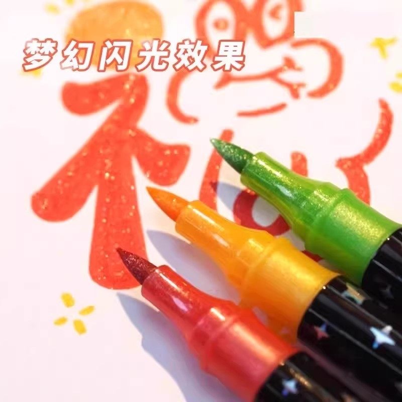 丙烯闪光马克笔软头儿童可水洗无毒彩色画画笔小学生美术专用不易透纸24色水彩颜色笔双头幼儿园益智宝宝玩具
