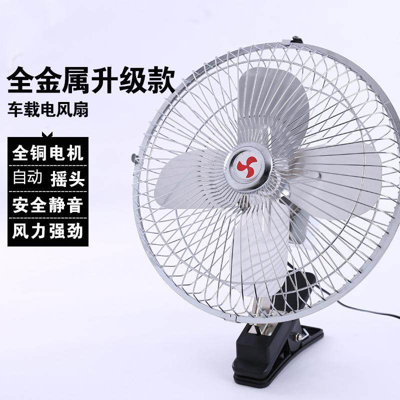 车载电风扇12V大货车用电风扇大风力金属扇叶自动摇头汽车小风扇