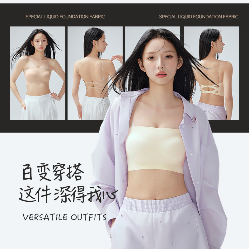 舞蹈生专用无肩带内衣粉底液抹胸防滑聚拢防走光打底裹胸美背文胸