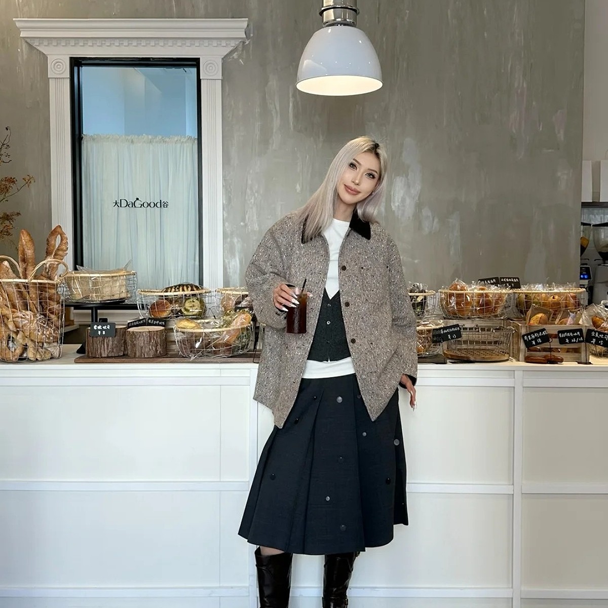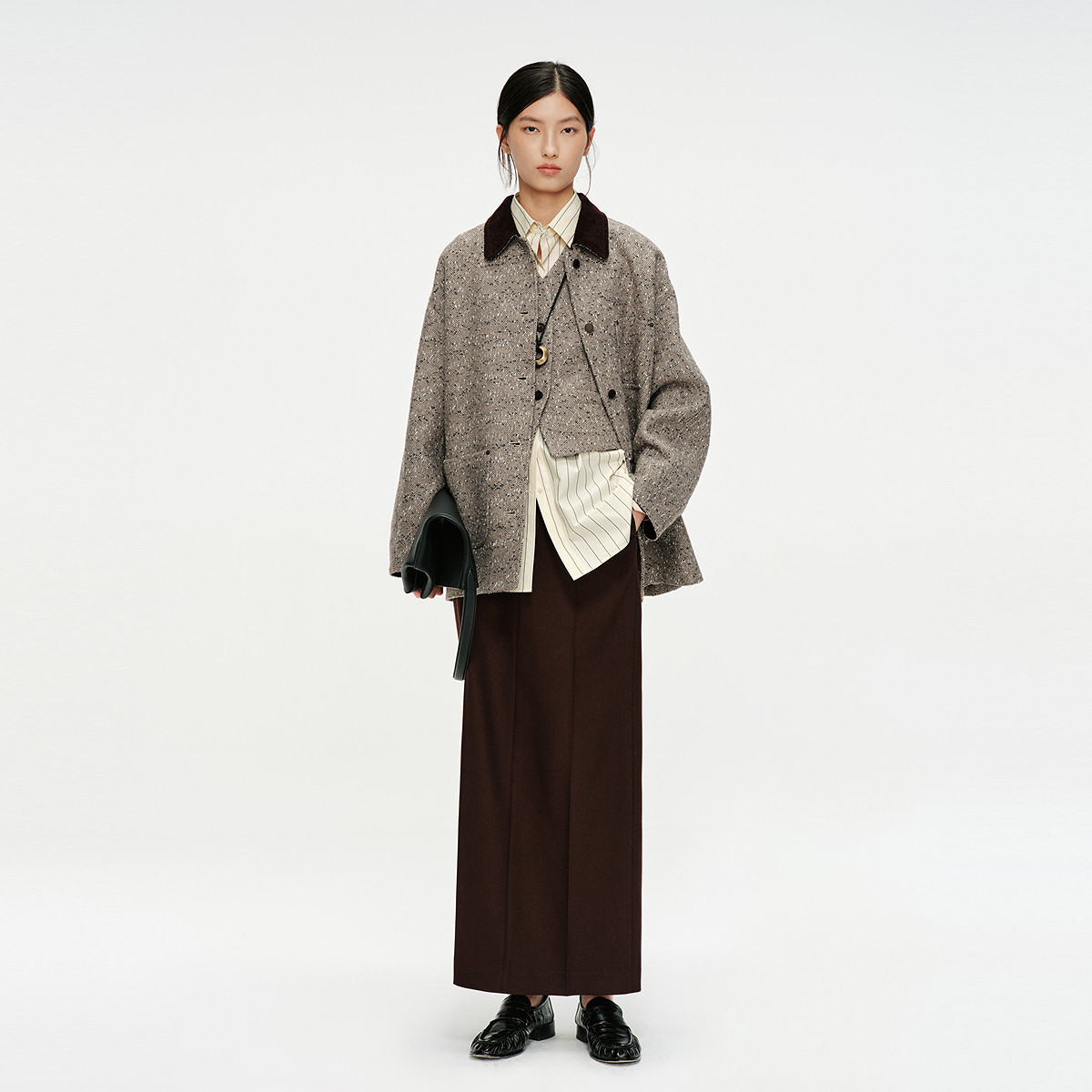 MESUX米岫25冬迪木尔风复古松弛老钱风中长款毛呢外套MNWUH610