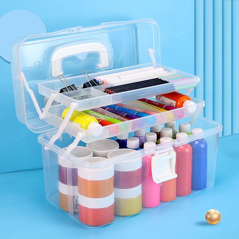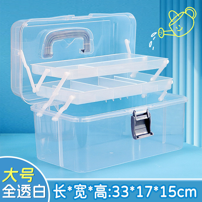 全透明收纳盒美术生工具箱多层收纳箱药箱三层大容量应急家庭手提箱工具箱家用药盒儿童玩具杂物收纳盒