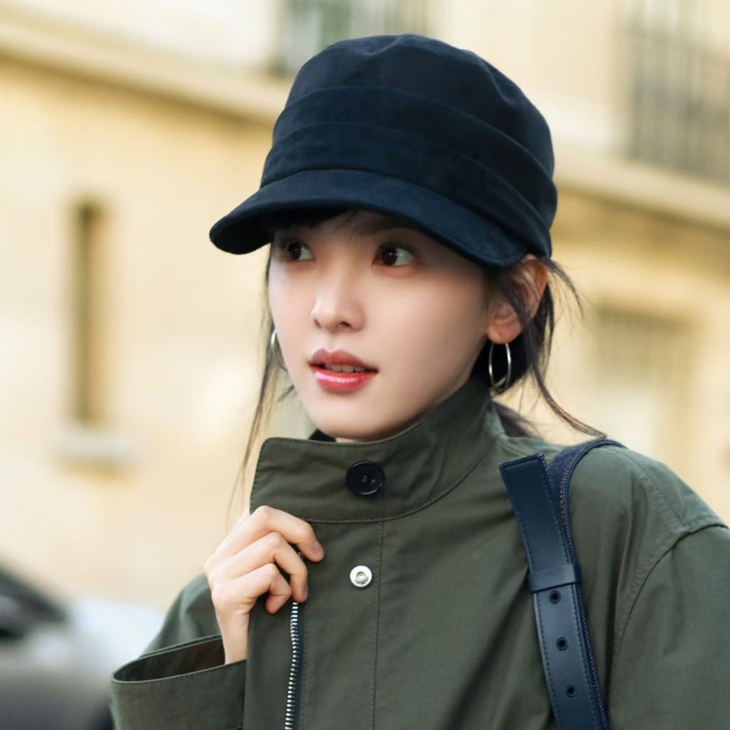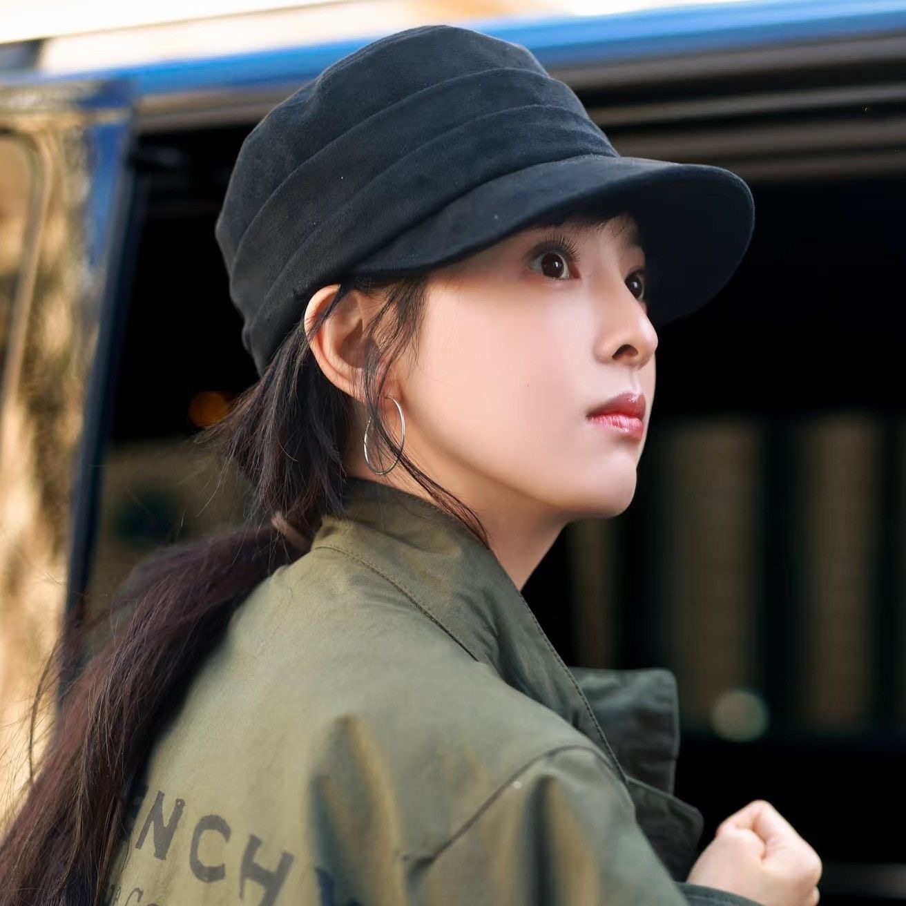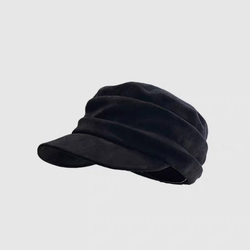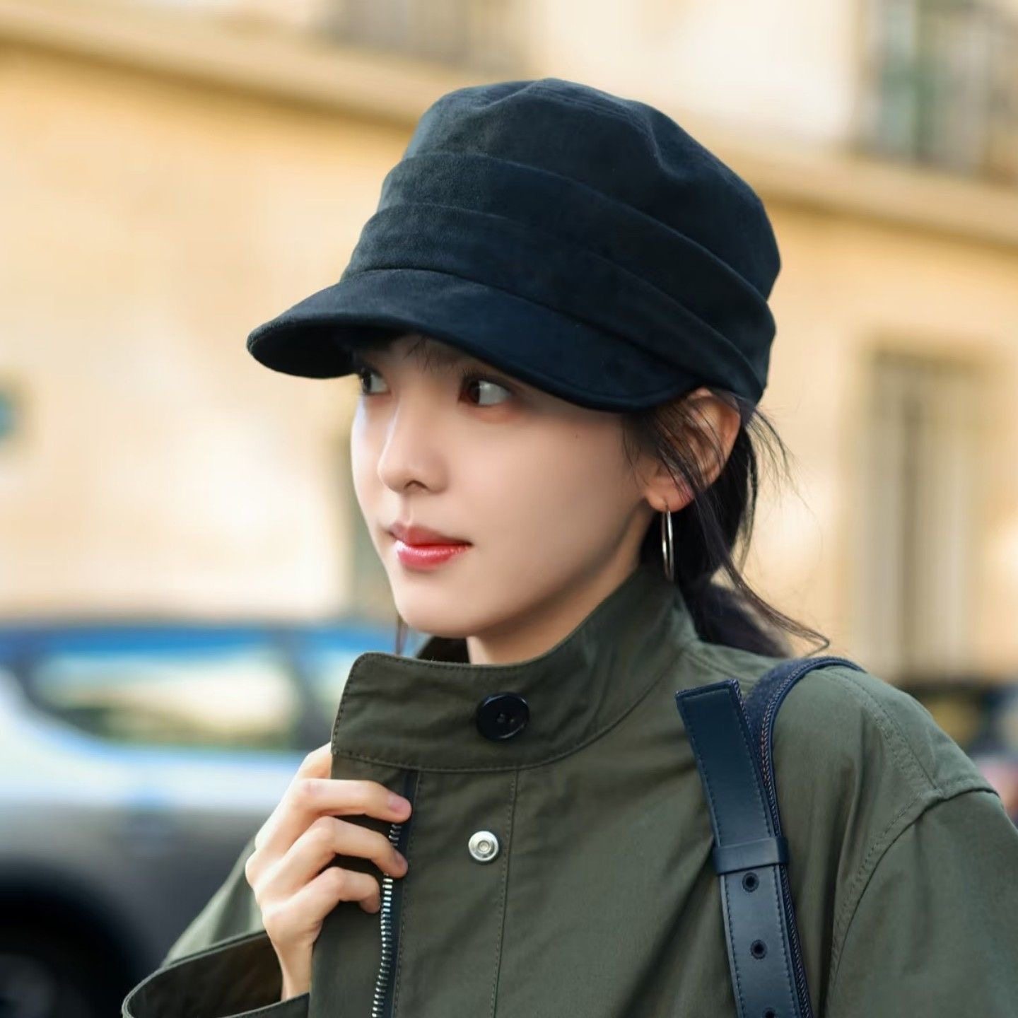 章若楠同款马术帽帽子女秋冬显脸小麂皮绒骑士帽时尚复古褶皱鸭舌
