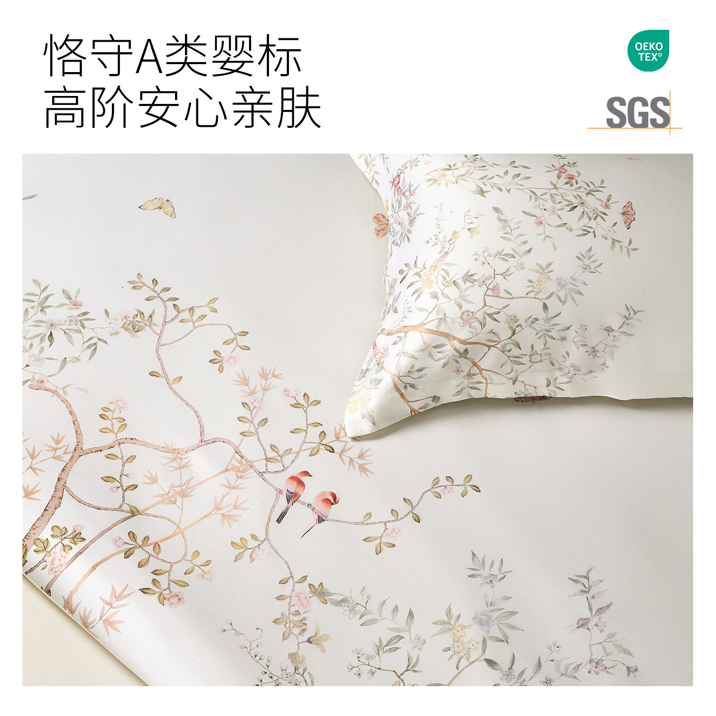 兰精天丝/埃及棉天丝磨毛 轻奢高级花鸟印花