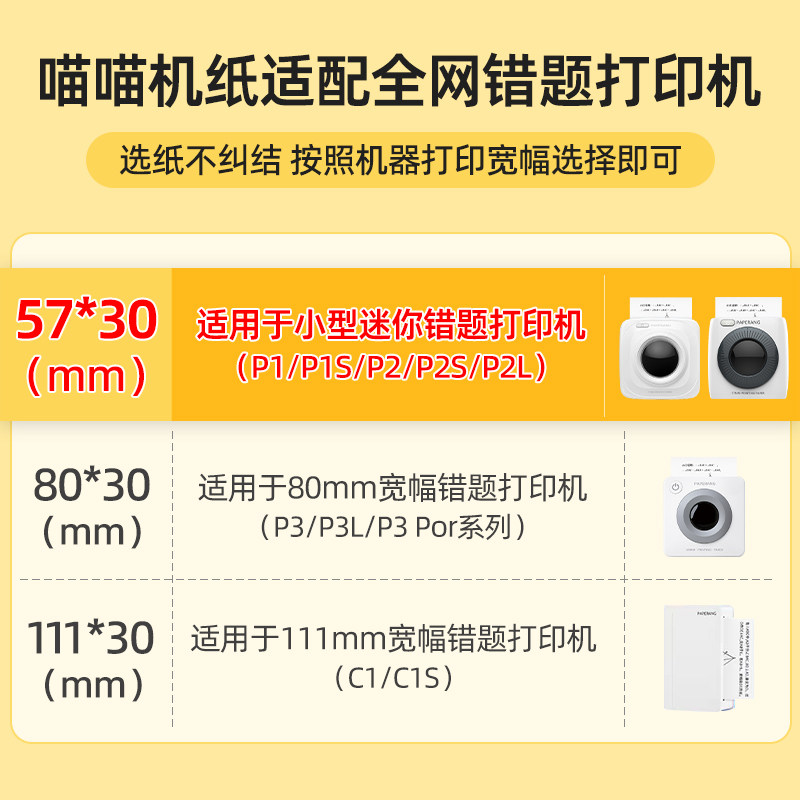 作业帮喵喵机官方打印纸热敏纸不干胶P1P2错题打印57*30不含双酚A
