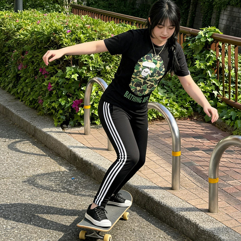 潮牌APE短袖t恤纯棉重磅高版本SHARK APE猿人迷彩滑板运动上衣夏