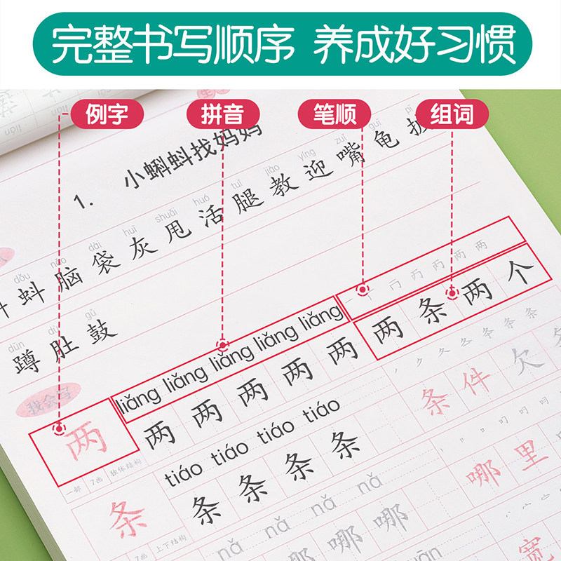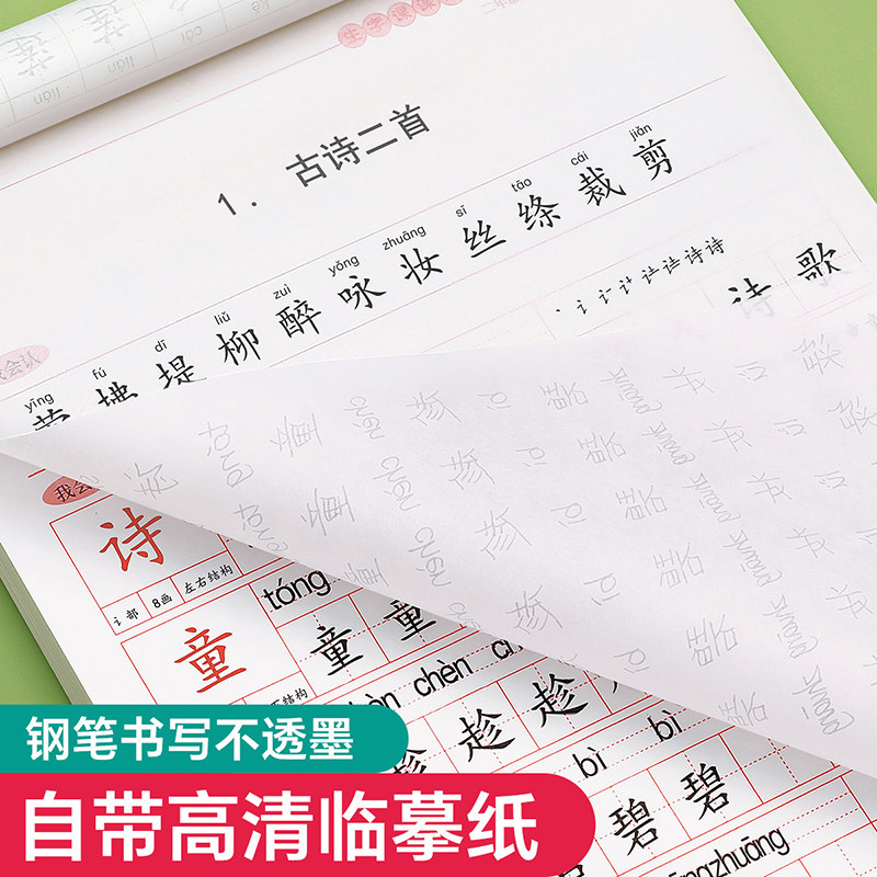 二年级字帖小学生专用上册下册语文同步临摹练字帖每日一练人教版练字楷书硬笔书法练习生字类字儿童笔画笔顺练字本古诗新版拼音