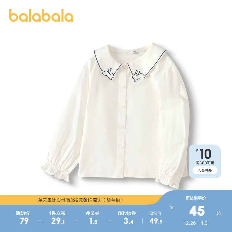 巴拉巴拉儿童长袖衬衫白衬衣女童装秋季可爱绣花翻领上衣时尚百搭