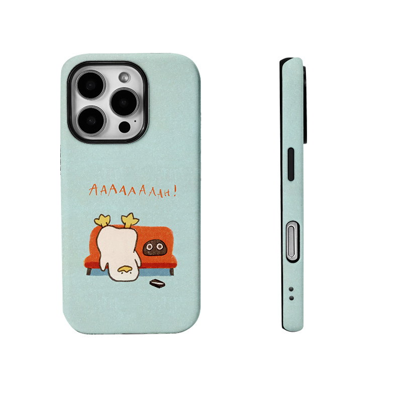 可爱卡通躺倒鸭绿色复菲林二合一手机壳适用苹果17nova14华为p70mate60小米15opporen14ovivo荣耀300iPhone16
