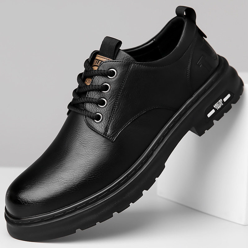 【小牛皮】青润chioryn袋鼠鞋男黑色真皮增高厚底休闲通勤风皮鞋