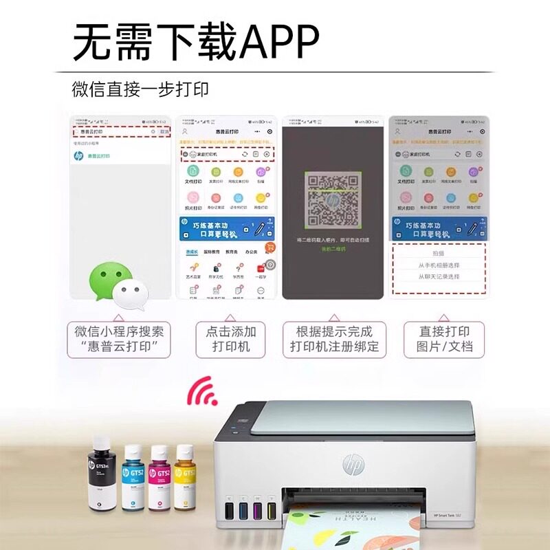 惠普582彩色家用小型打印机复印扫描可连手机无线办公政府补贴