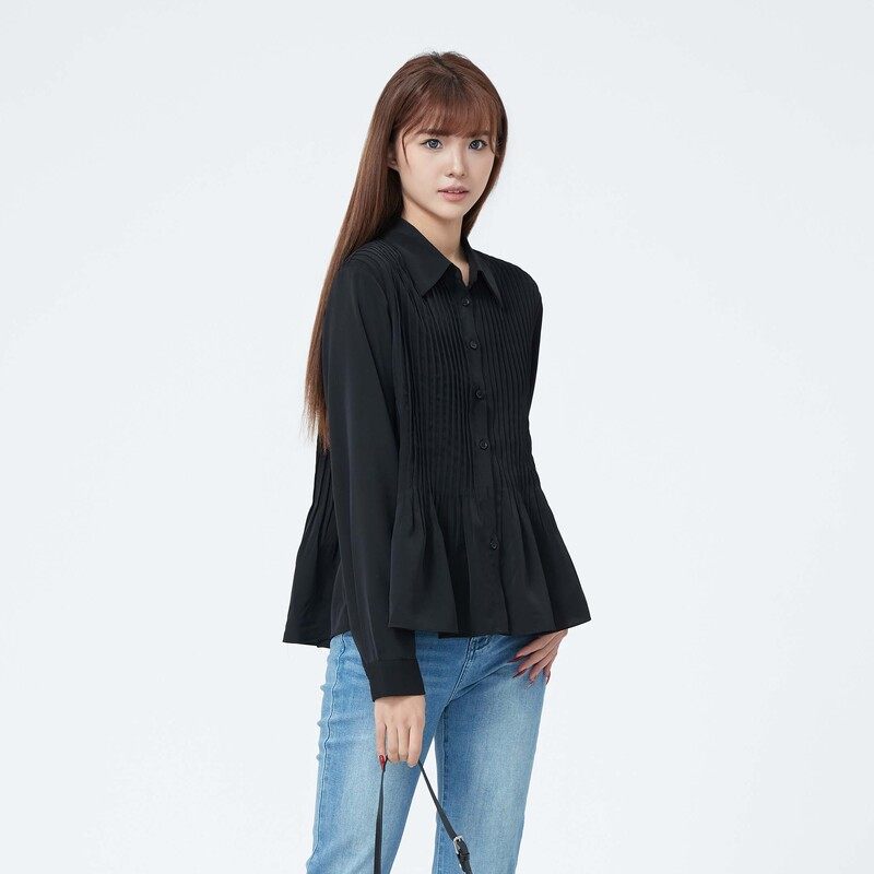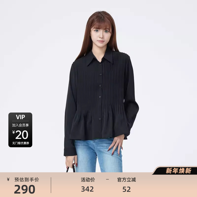sdeer圣迪奥女装休闲翻领风琴褶垂坠雪纺衬衫S23480502