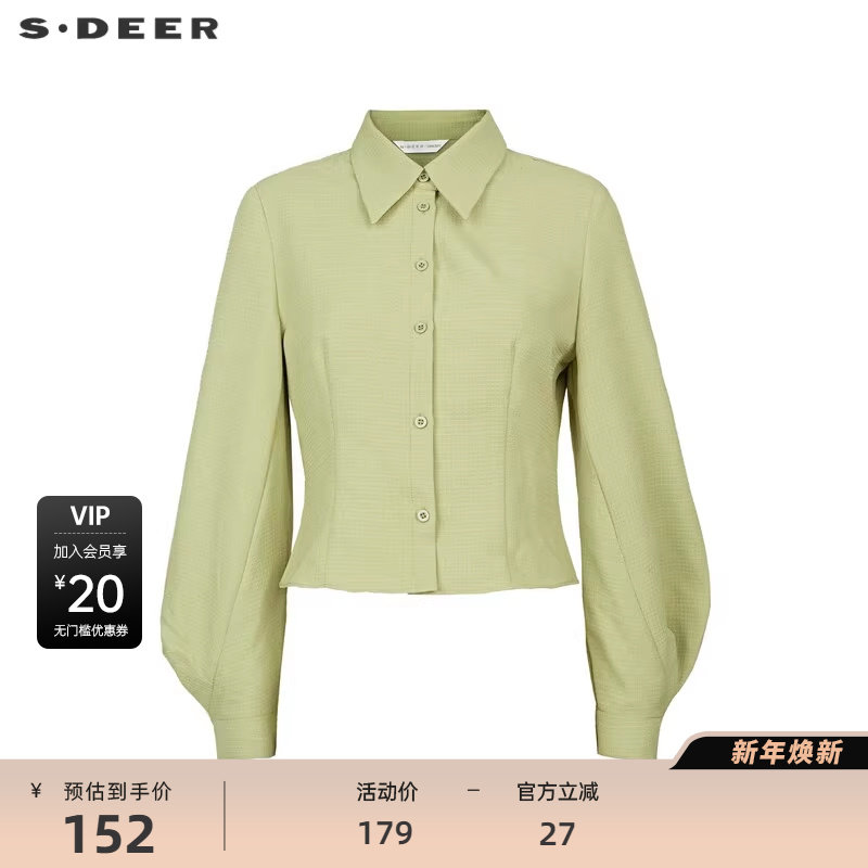 sdeer圣迪奥女装复古翻领肌理泡泡袖雪纺衬衫S233Z0546