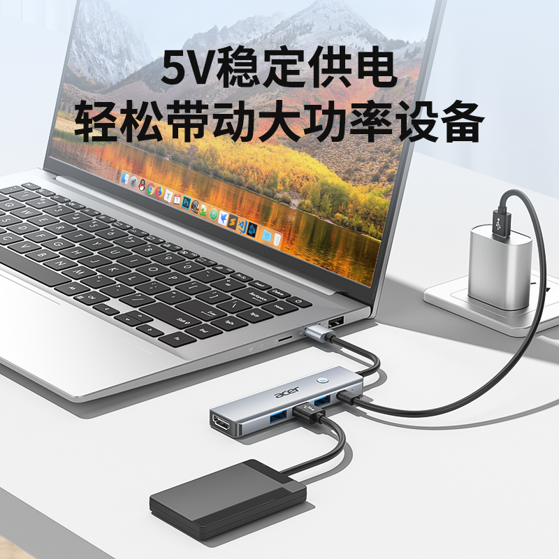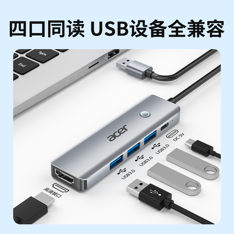 Acer/宏碁USB转HDMI高清投屏扩展坞USB3.0分线器拓展转接头适用MacBook 华为电脑平板转换器五合一