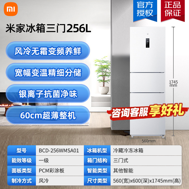 小米米家256L三开门风冷无霜家用租房宿舍寝室省电一级小冰箱