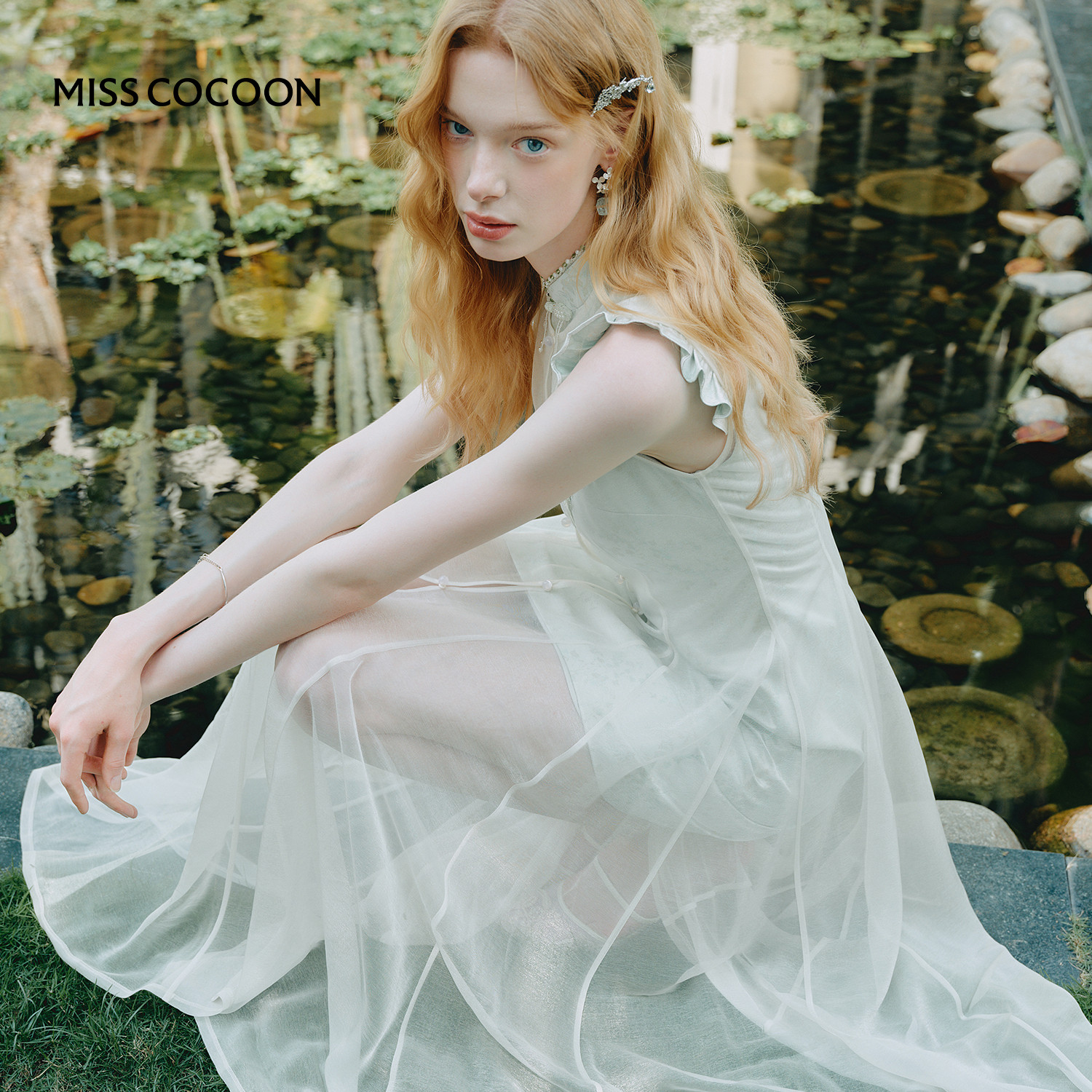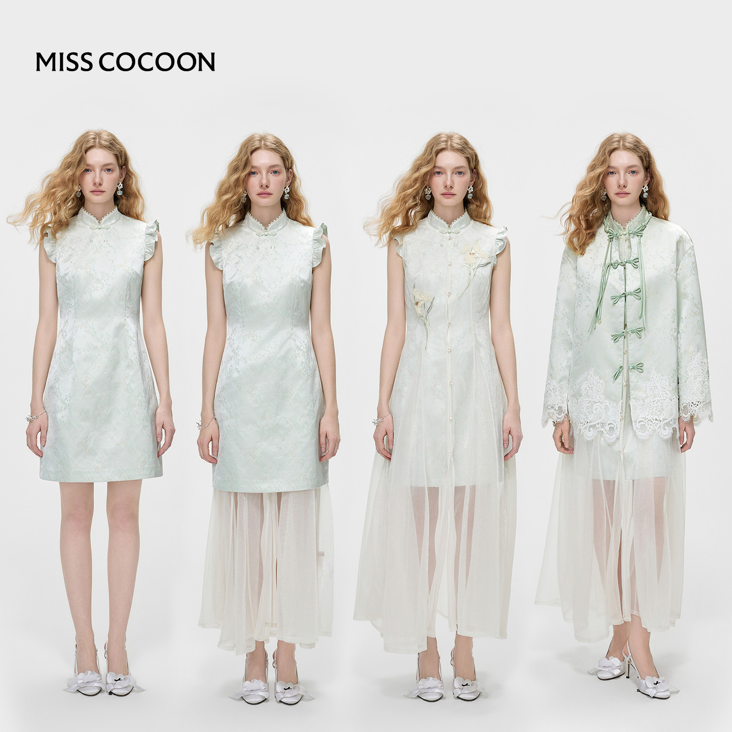 MISSCOCOON可可尼国风立领套装女2026春新款两件套网纱刺绣旗袍裙