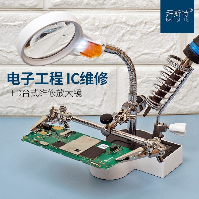 台式放大镜维修用电路板电子元件高倍手机主板芯片带灯烙铁架高清