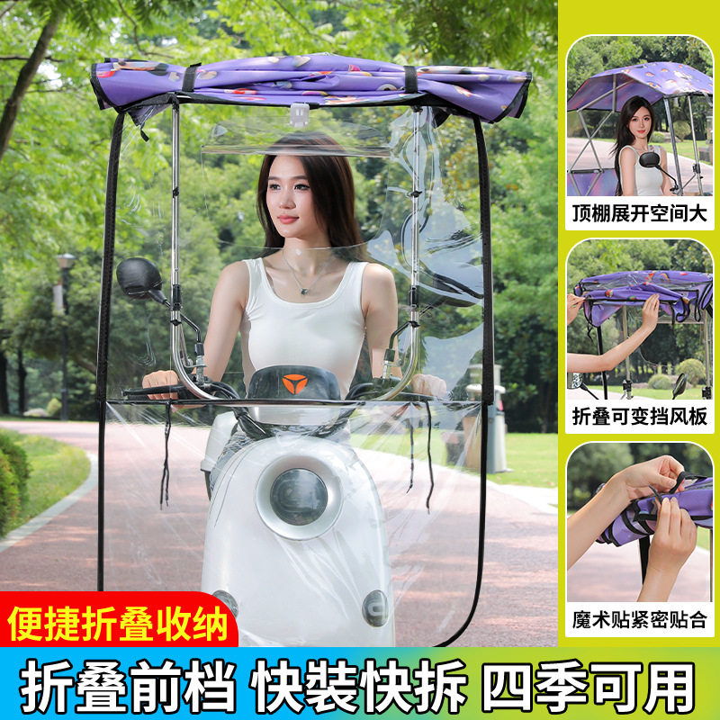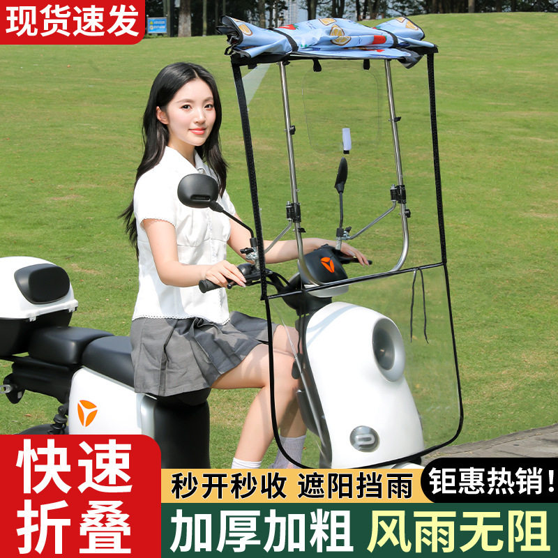电动车雨篷棚电瓶摩托车防风挡雨防晒伸缩遮阳伞快拆折叠新款雨棚