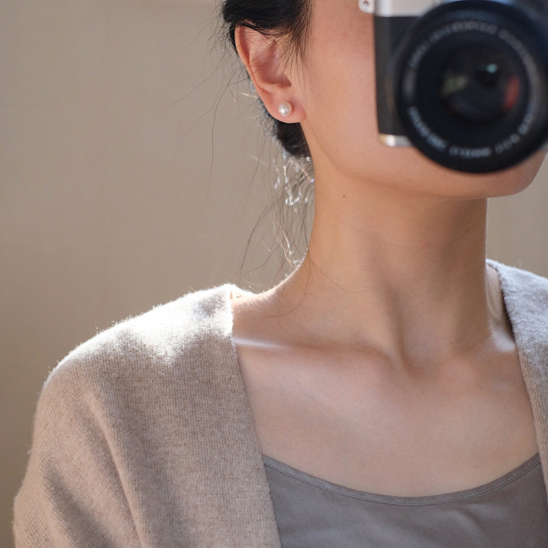 999纯银耳钉女施家珍珠馒头珠耳环扁圆高级气质法式复古轻奢耳饰