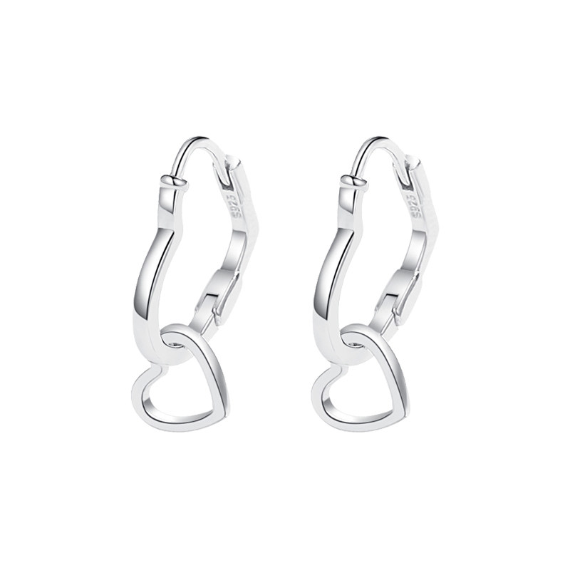 小麋人925纯银双爱心耳圈女耳扣2025新款潮耳钉耳环耳饰小众设计