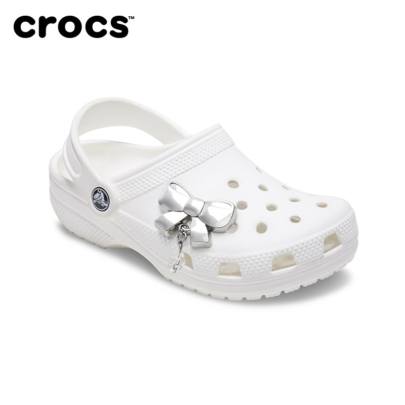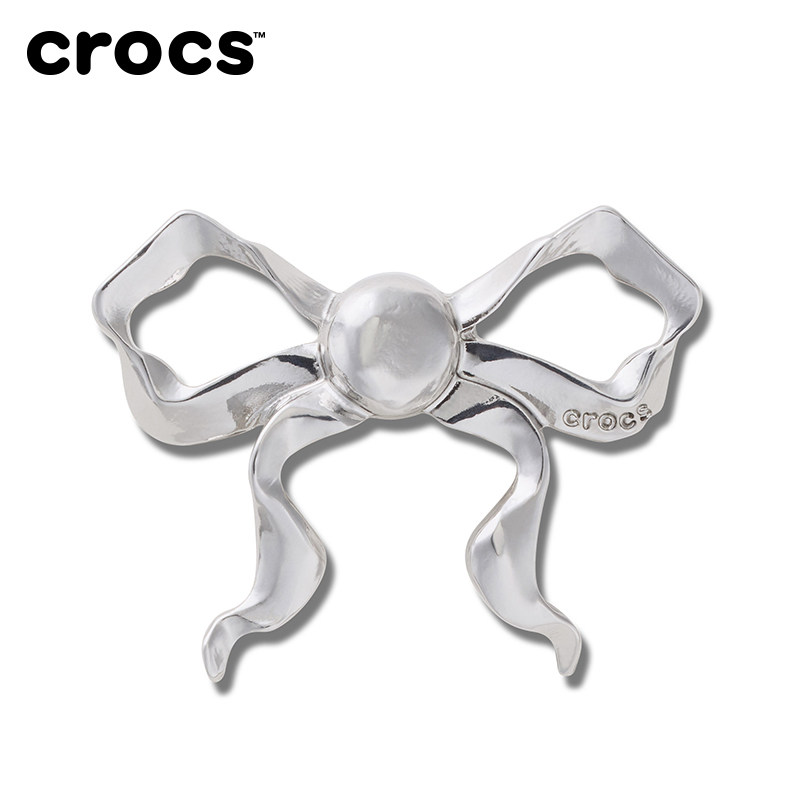 Crocs卡骆驰配饰智必星洞洞鞋鞋花 质感朋克银色蝴蝶结