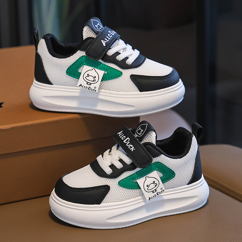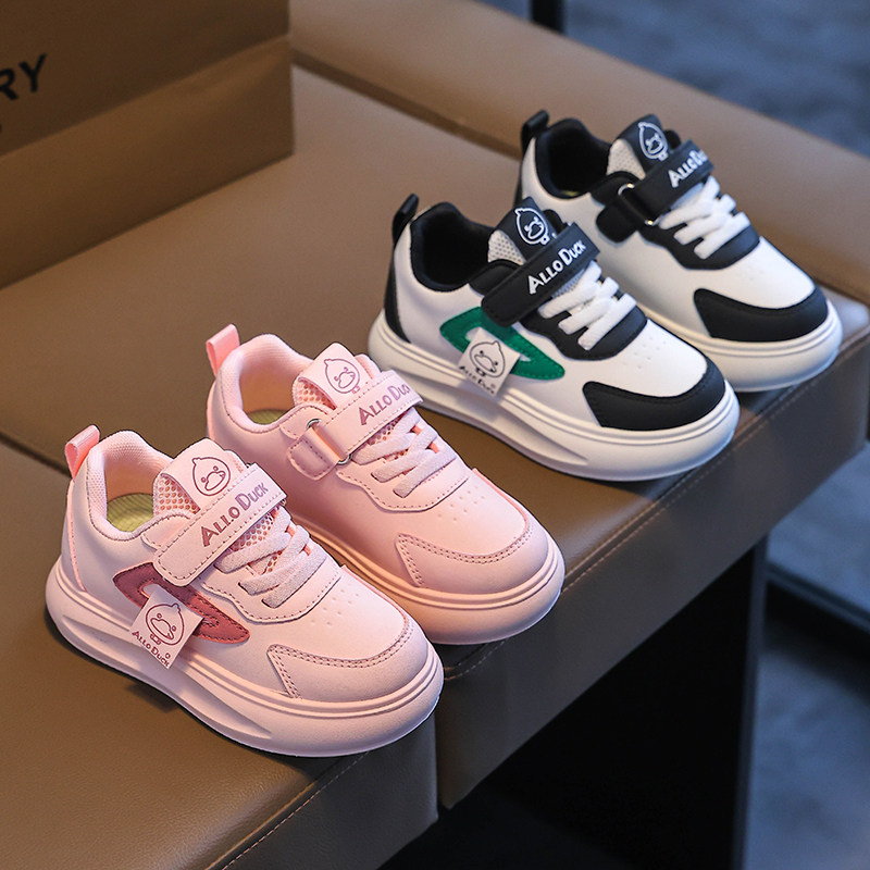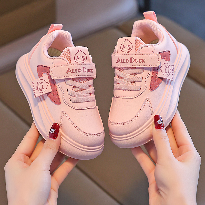小黄鸭儿童白色运动鞋秋冬季皮面防水男女童休闲鞋网面透气跑步鞋