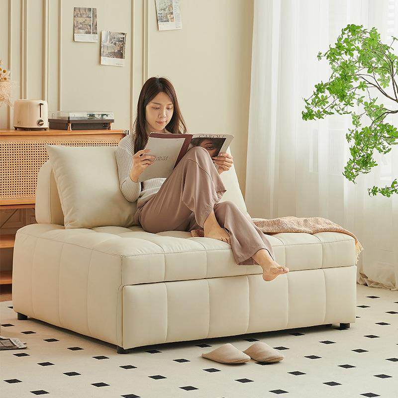 日式奶油风泡芙布艺沙发小户型客厅两用皮艺复古单人沙发床套装