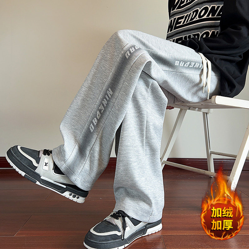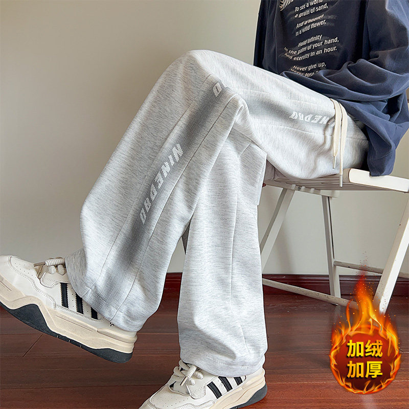 美式加绒卫裤男生春秋冬季2025新款阔腿休闲裤子宽松直筒运动长裤