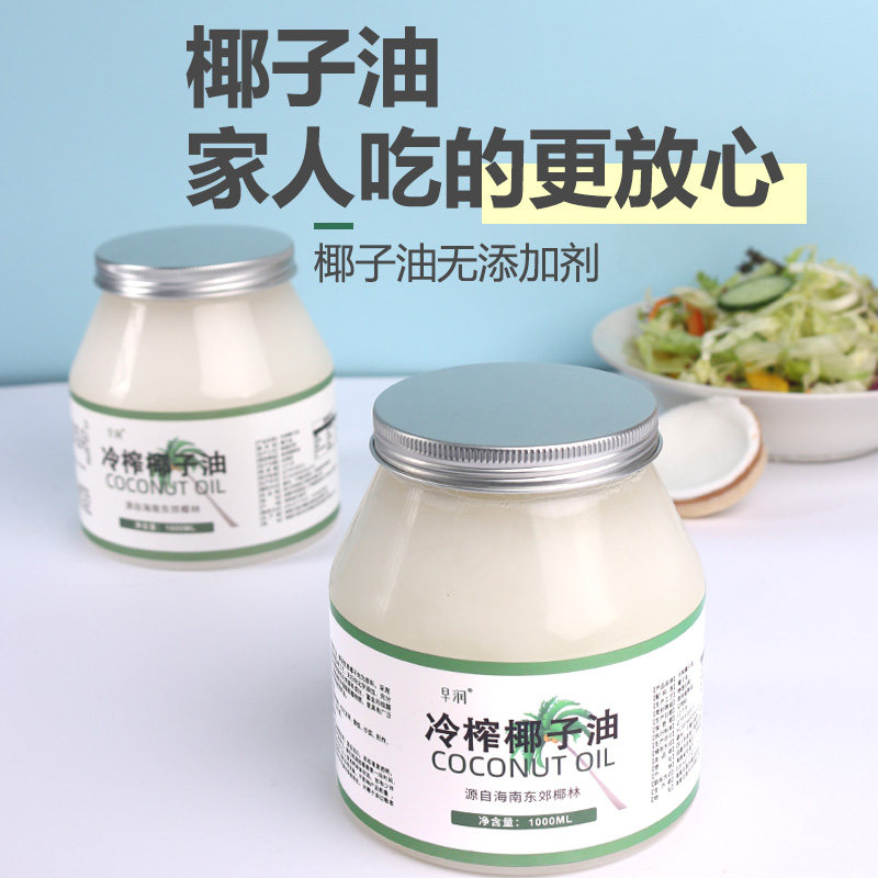 椰子油食用油1000ml海南鲜冷压初榨有机天然护发肤卸妆纯mct生酮