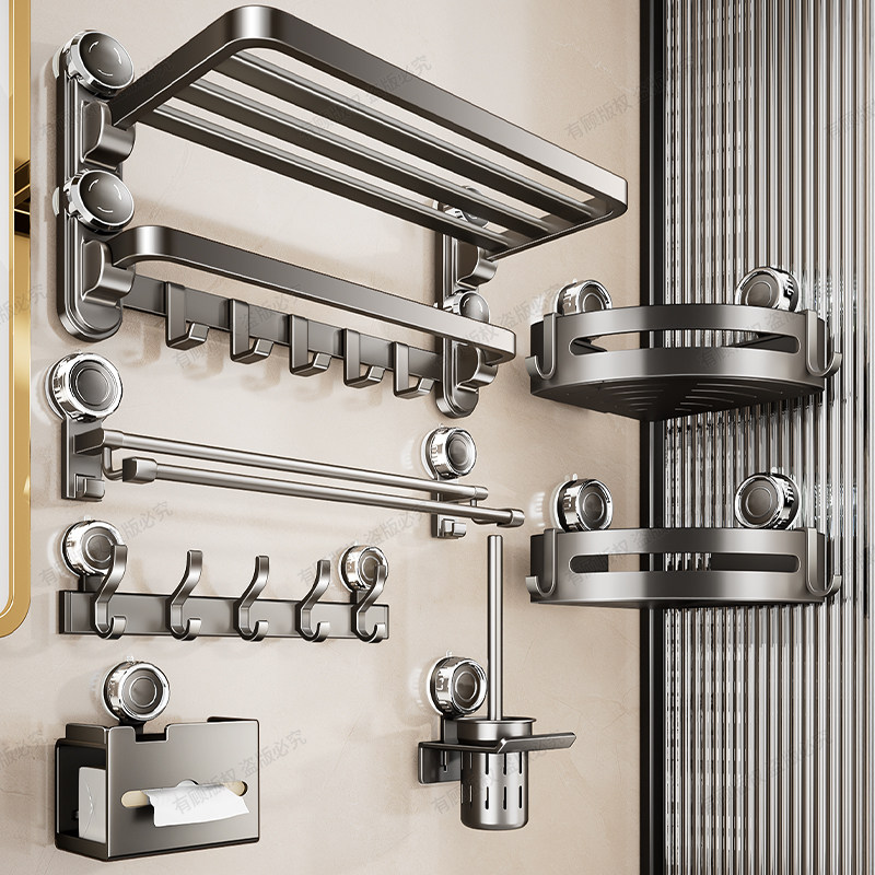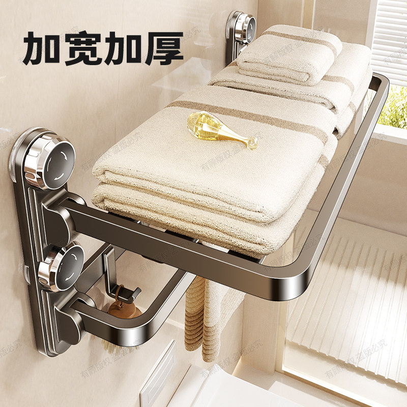 免打孔吸盘毛巾架卫生间浴巾架子浴室置物架厕所收纳挂钩挂杆马桶