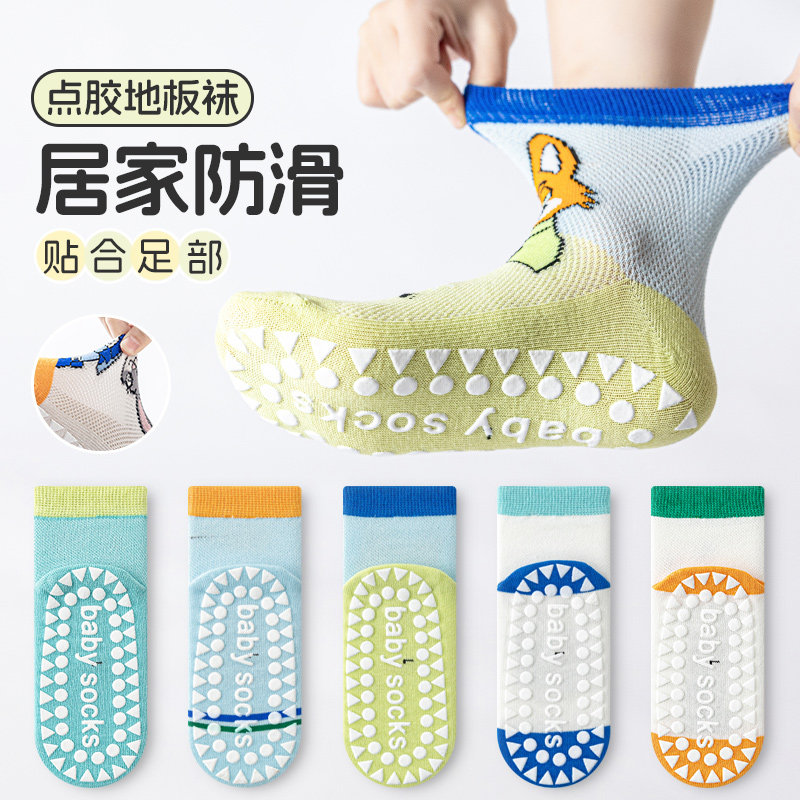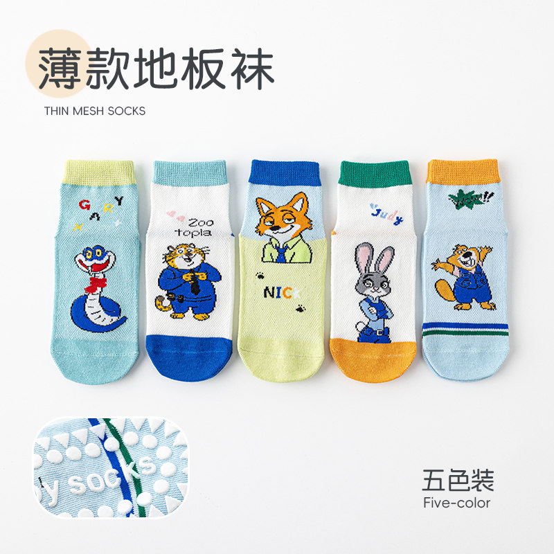 儿童袜子男童春夏季薄款卡通疯狂动物城那男孩夏天网眼点胶地板袜