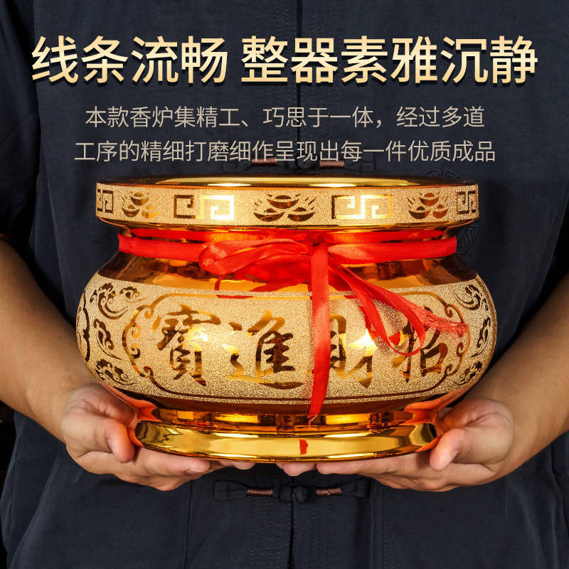 香炉家用室陶瓷烧香炉供奉内插香炉供佛具用品上供沙金大香炉招财