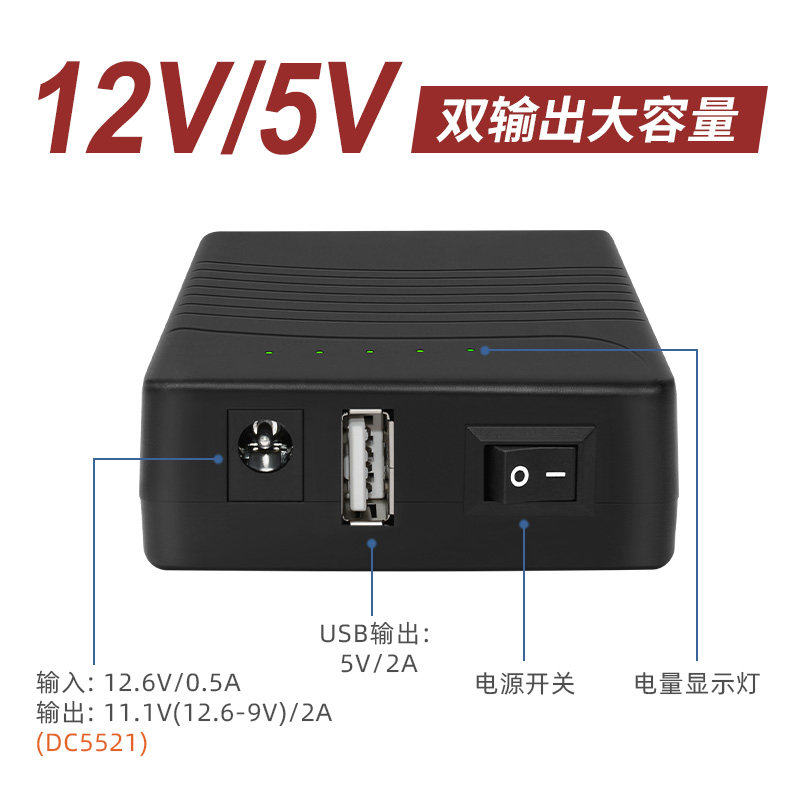 亿森能12V锂电池组带3C认证小体积大容量5v移动电源18650芯多功能可充电6000毫安适用于音箱电子琴路由器灯带